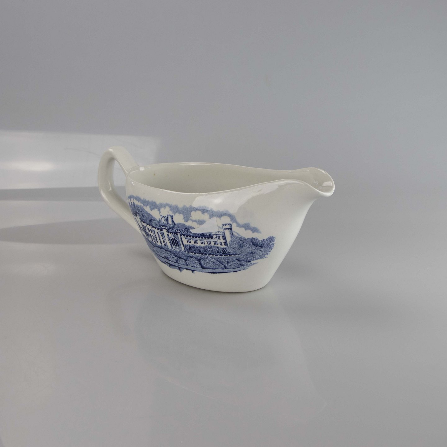 Sovsekande i lys fajance med blådekoreret slotsmotiv.