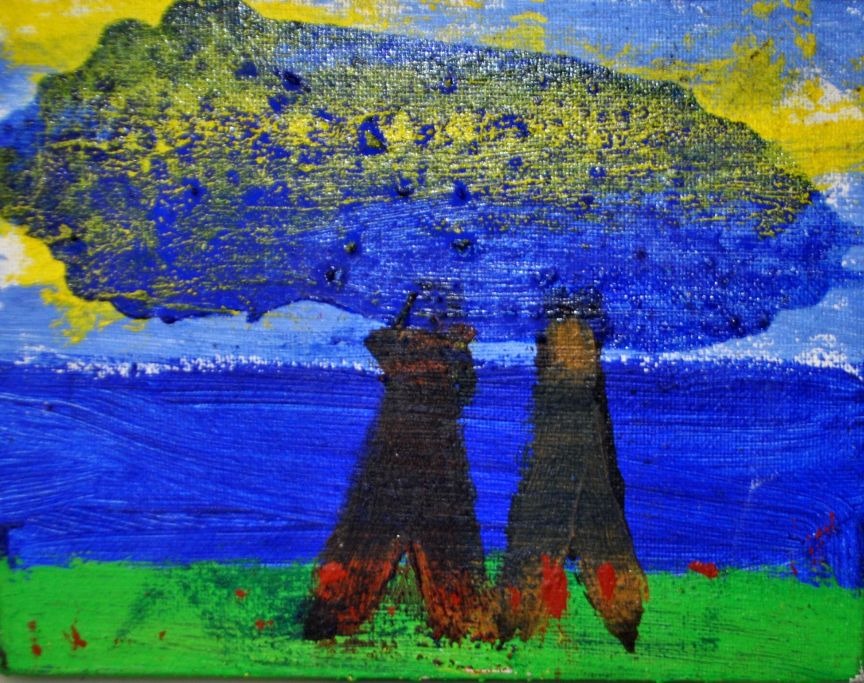 Gislason, Jon (1955 - ) Danmark: To personer ved havet. Acryl på lærred. Verso signeret 2019. 14 x 18 cm.  Uindrammet.