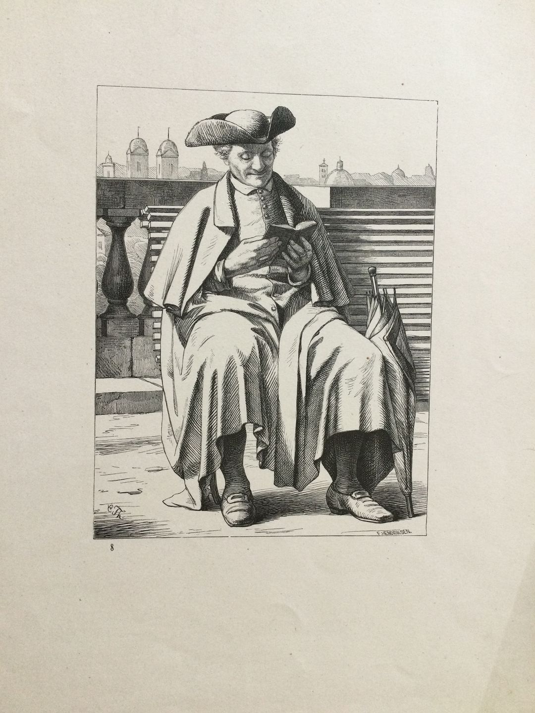 Xylografi af Frederik Hendriksen - En læsende romersk præst.