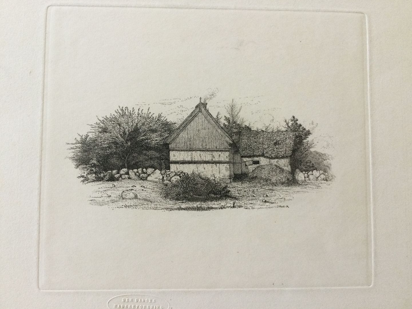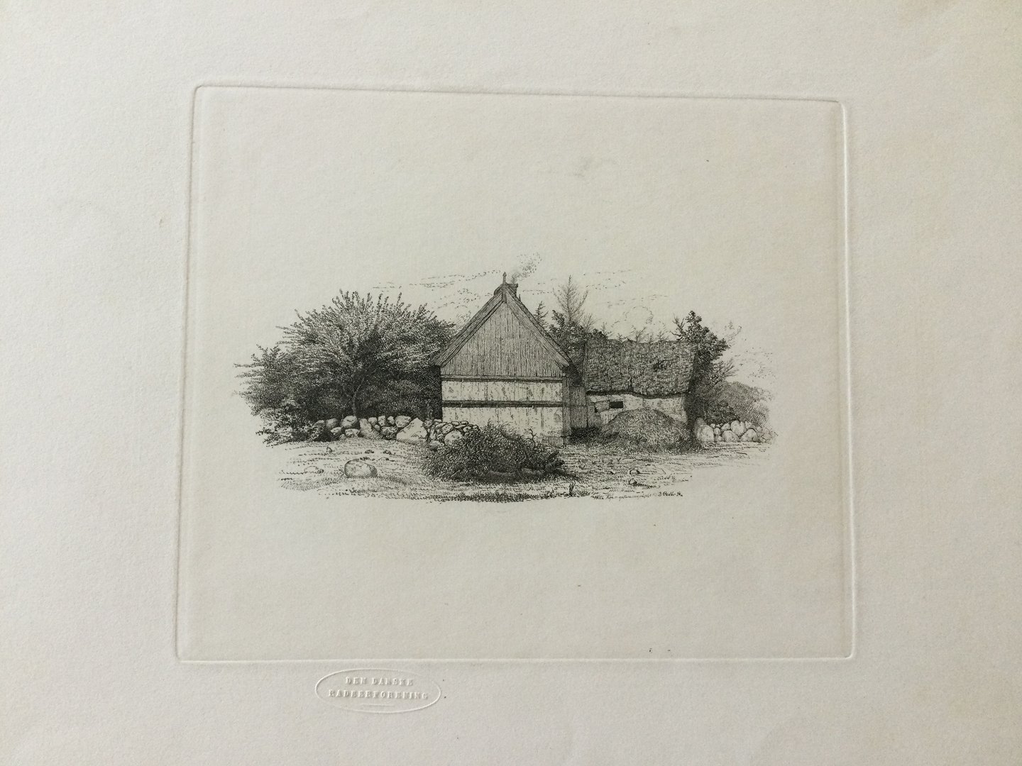 Galvanografi fra DDRF af Vilhelm Kyhn - Landskab med bondegård 1875,