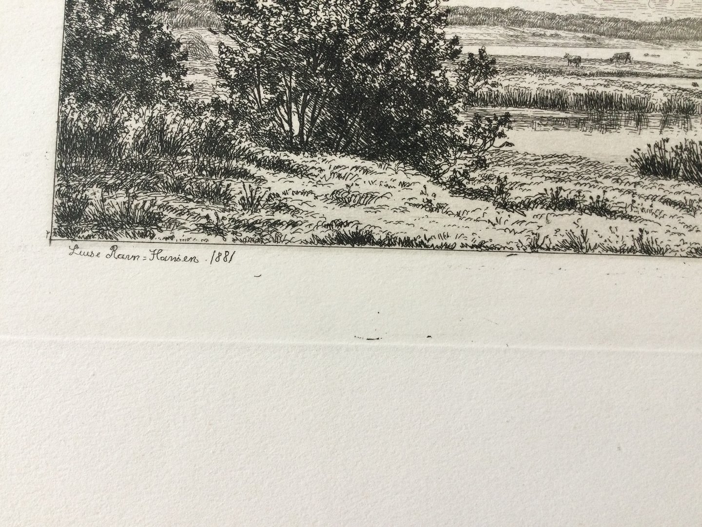 Radering fra DDRF af Louise Ravn-Hansen 1881 - Færgelunden ved Frederikssund.