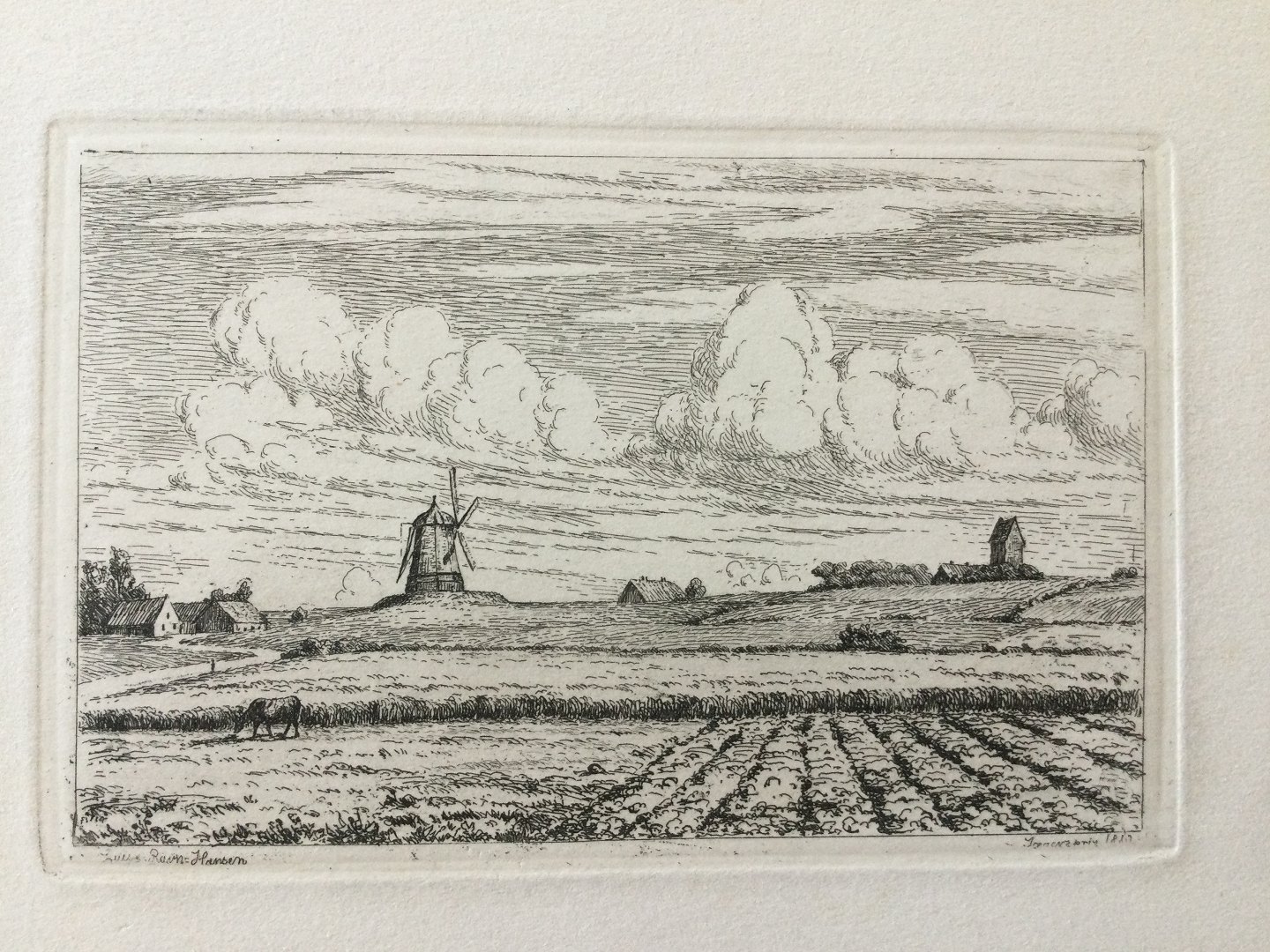 Radering fra DDRF af Louise Ravn-Hansen 1880 - Dråby Mølle ved Jægerspris.