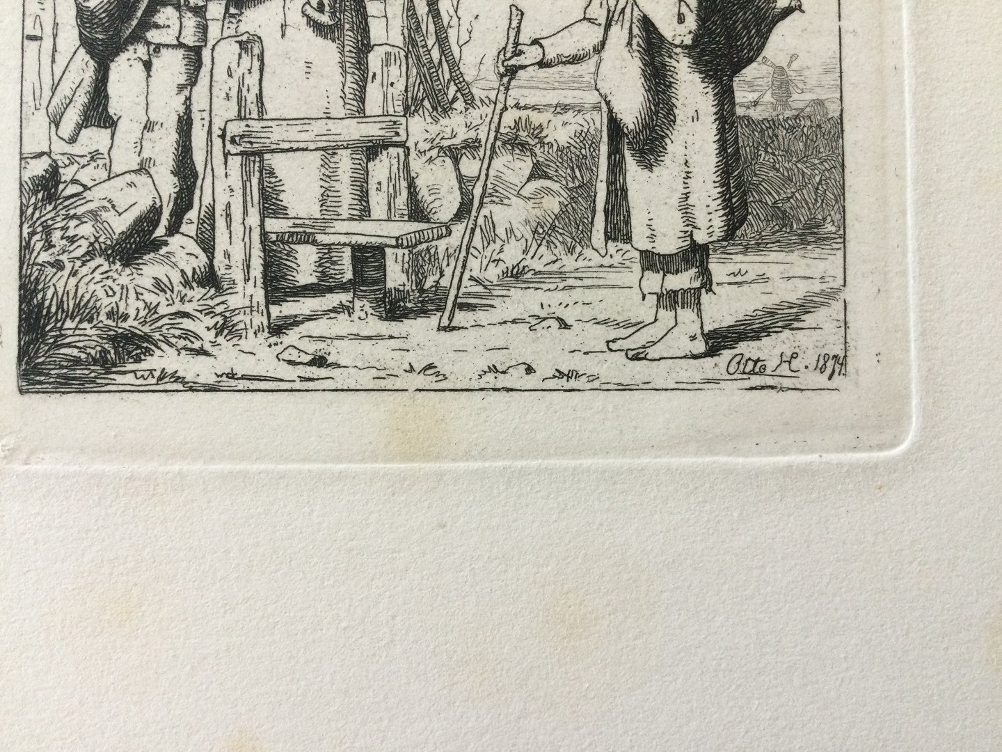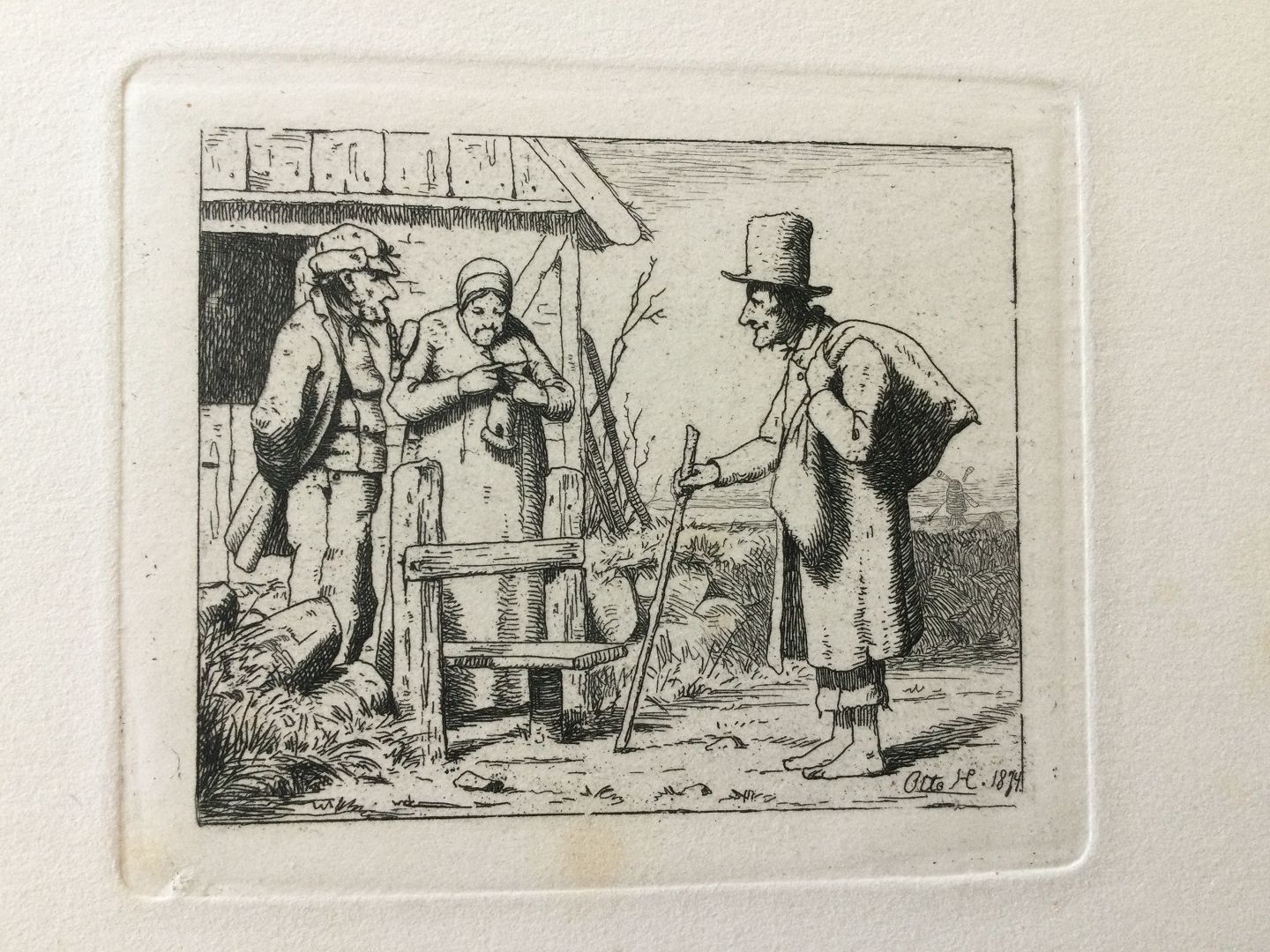 Radering fra DDRF af Otto Haslund - En stodder og et par husmandsfolk 1874.