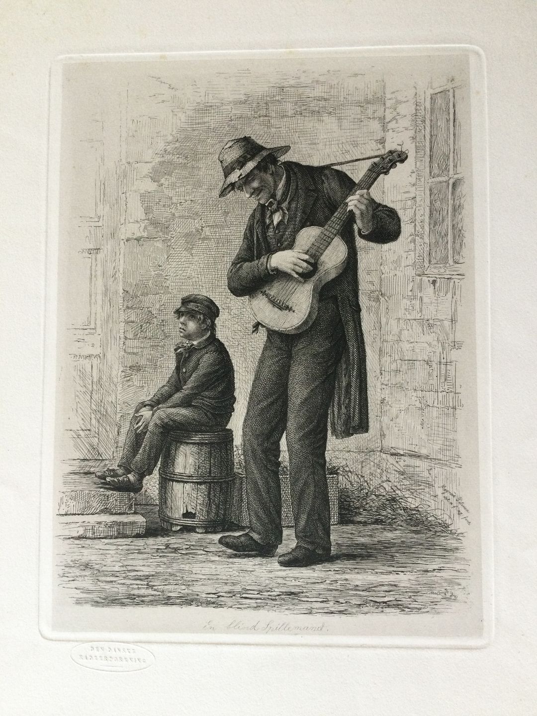 Radering fra DDRF af Julius Magnus-Petersen 1871 - En blind Spillemand.