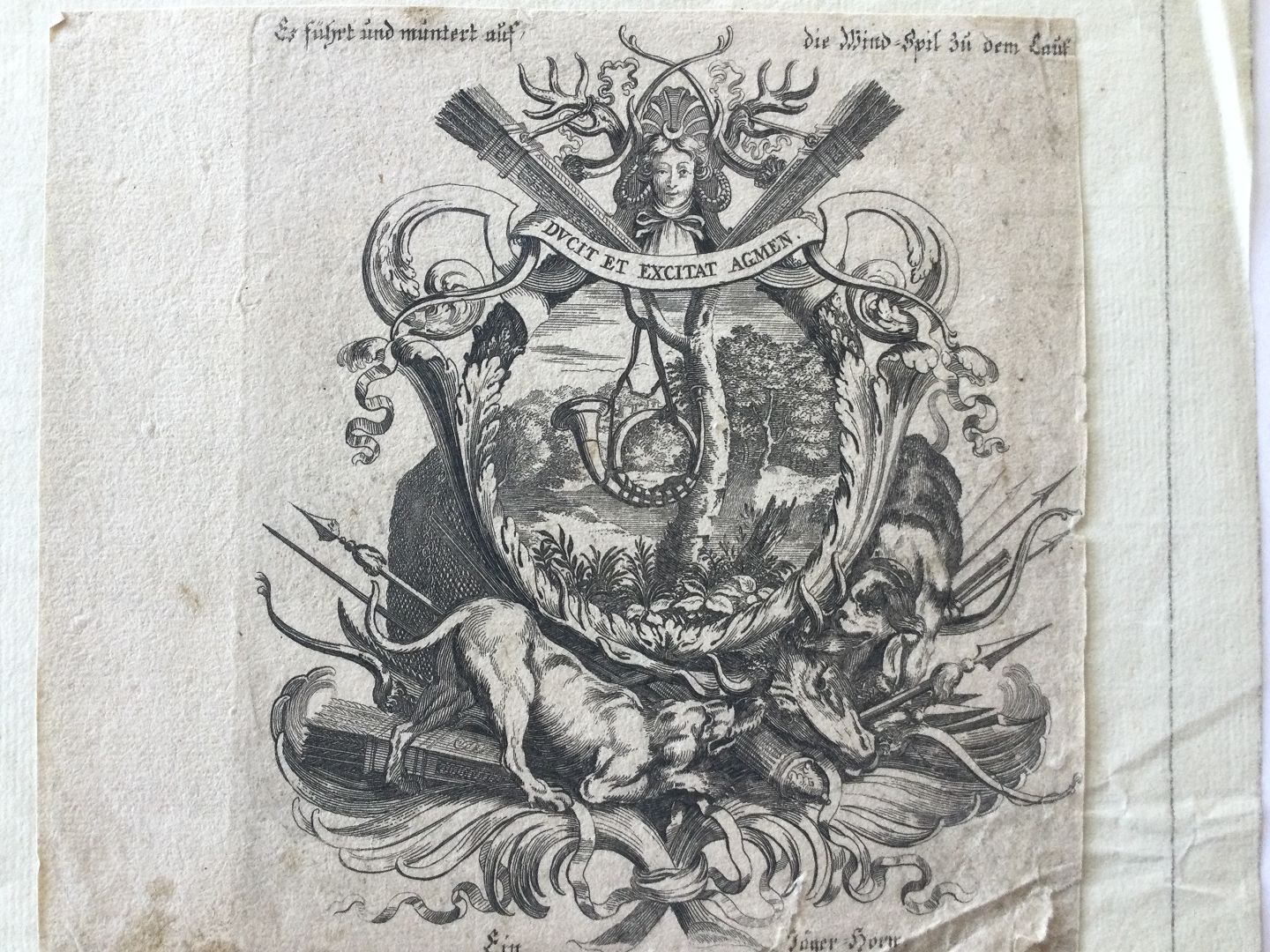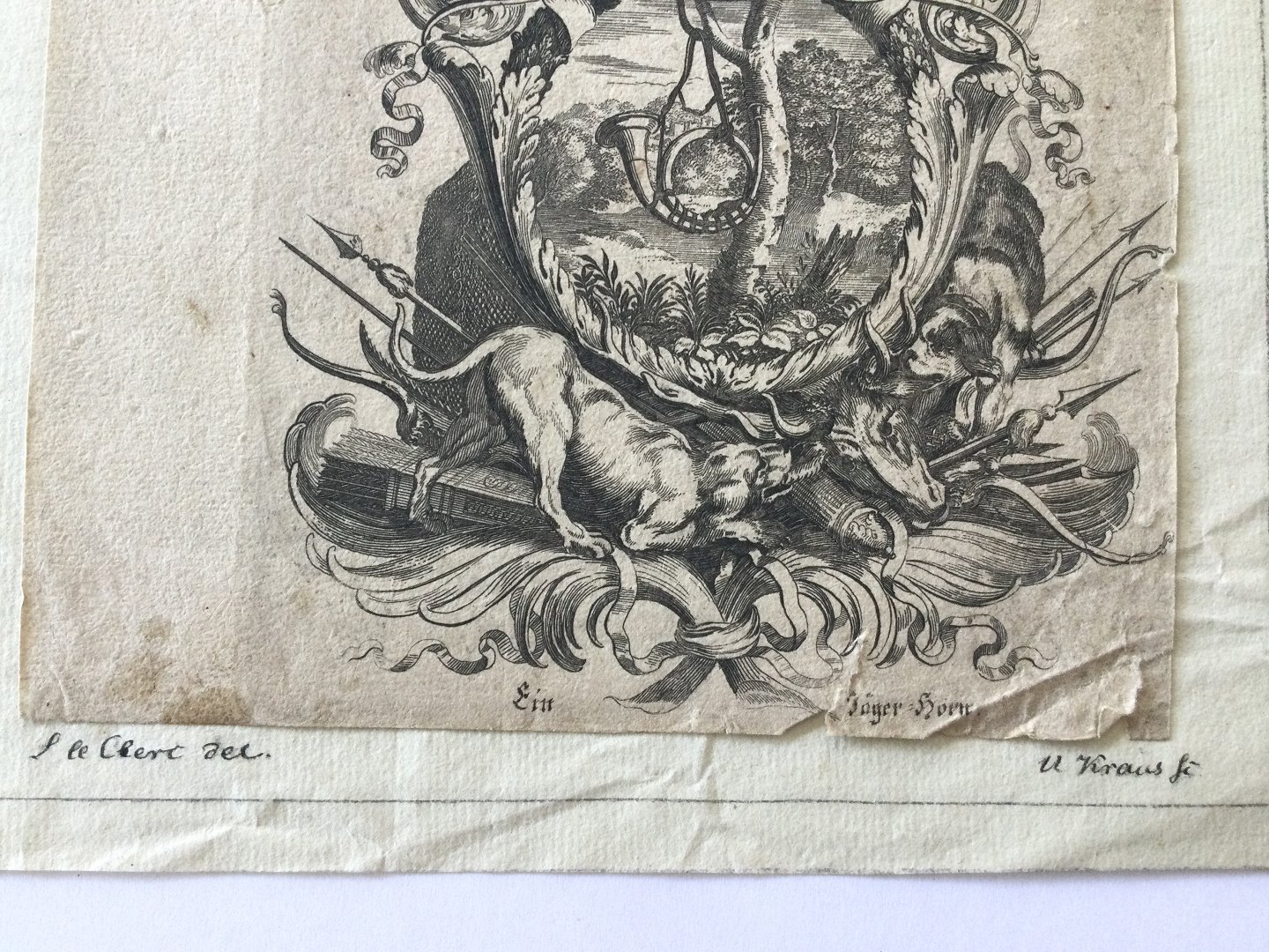 Titelblad til skrift om jagt "Pour La Chasse" 17 årh.