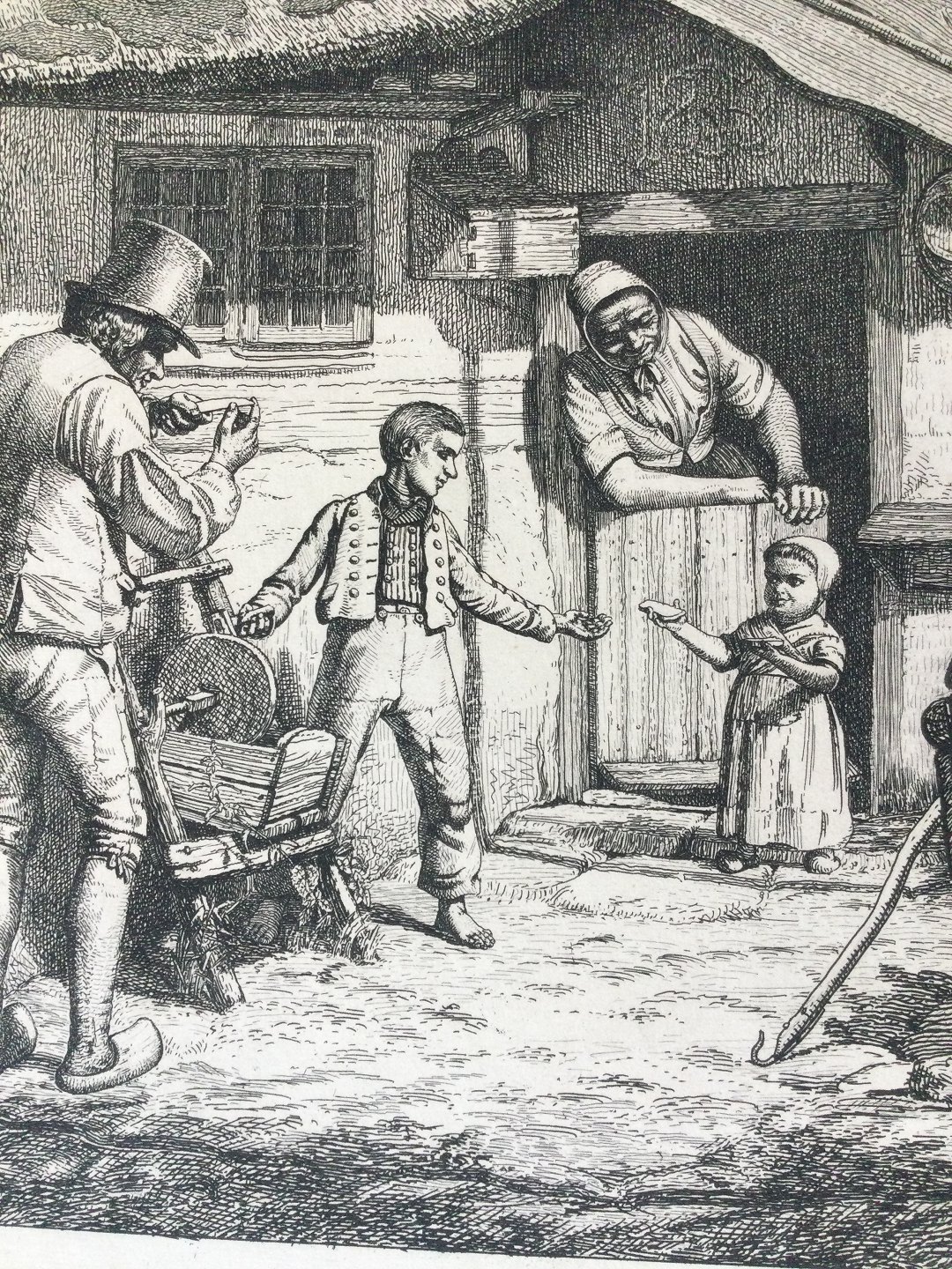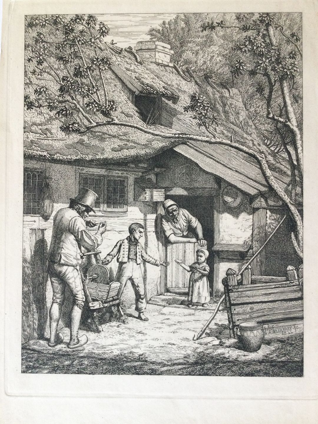 Radering fra DDRF af Hans Jørgen Hammer 1856 - En Husmands familie 1855.