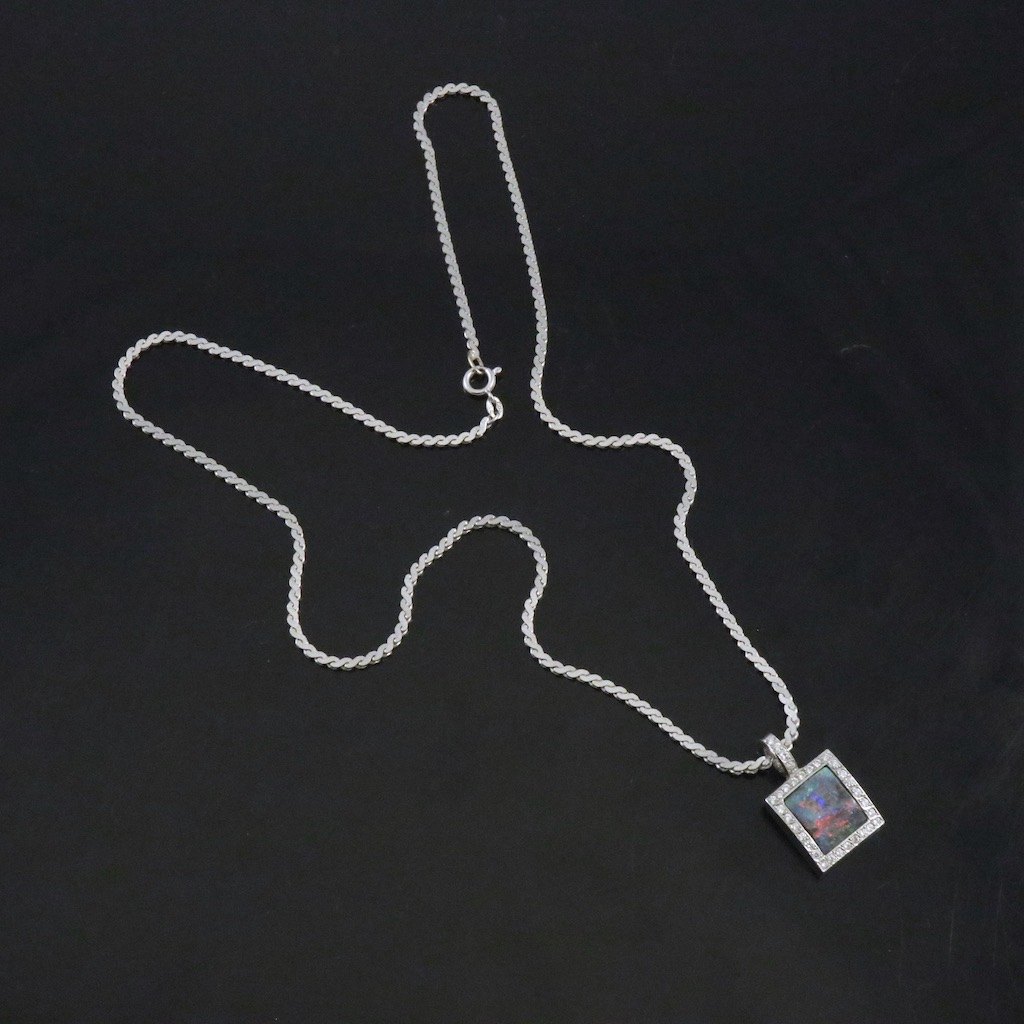 Vedhæng i 14k hvidguld med opal og brillianter.