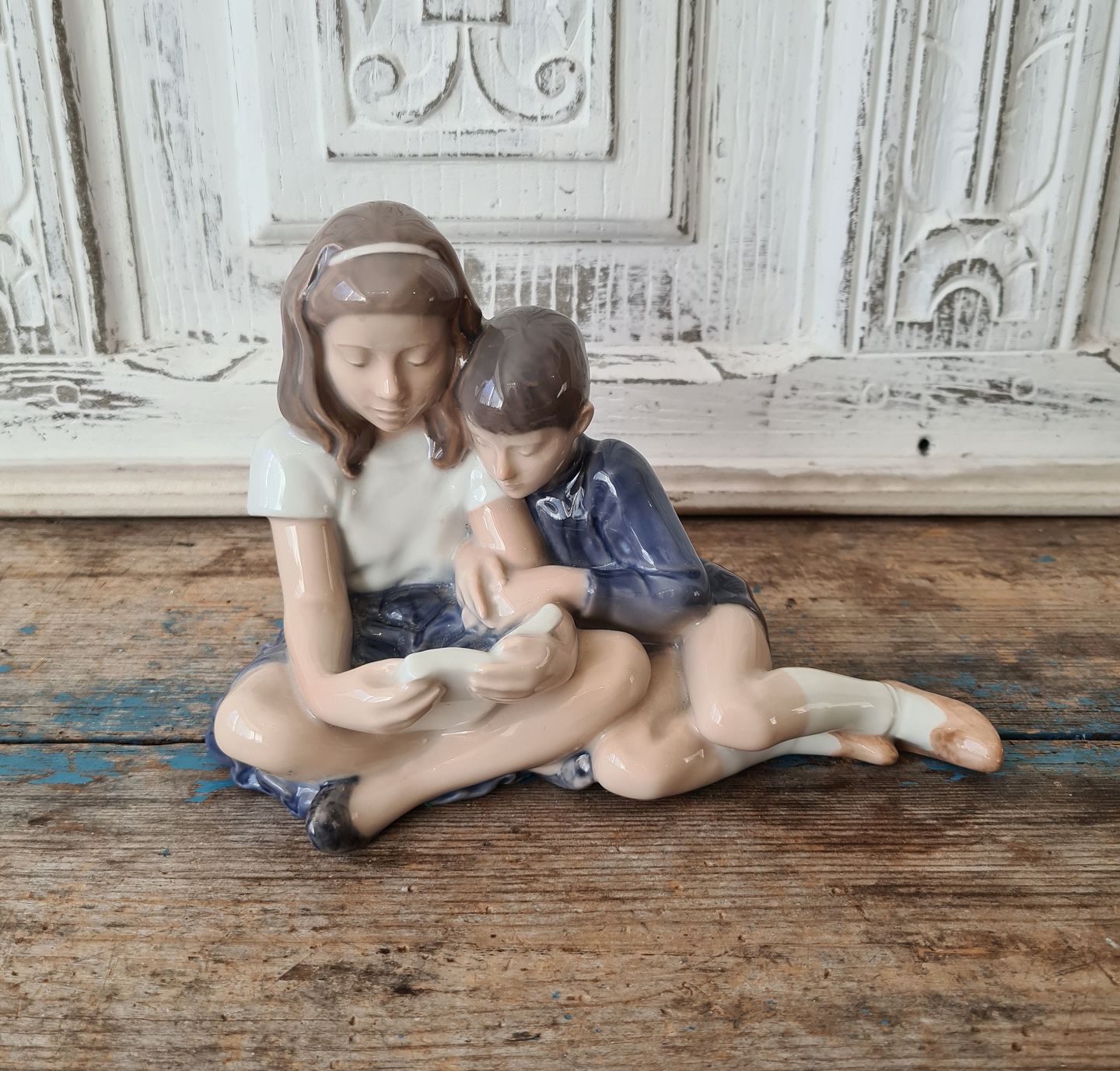 Royal Copenhagen figur - to læsende børn