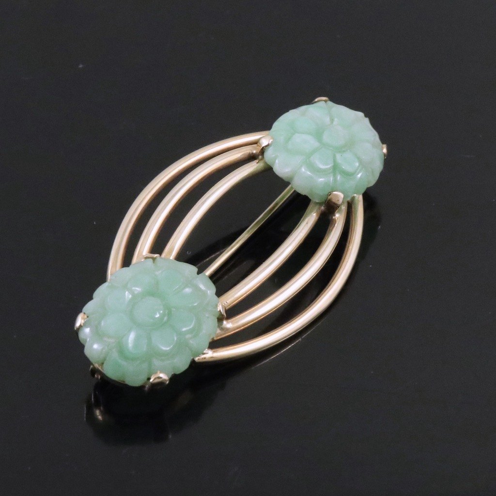 Broche i 14k guld med jade.