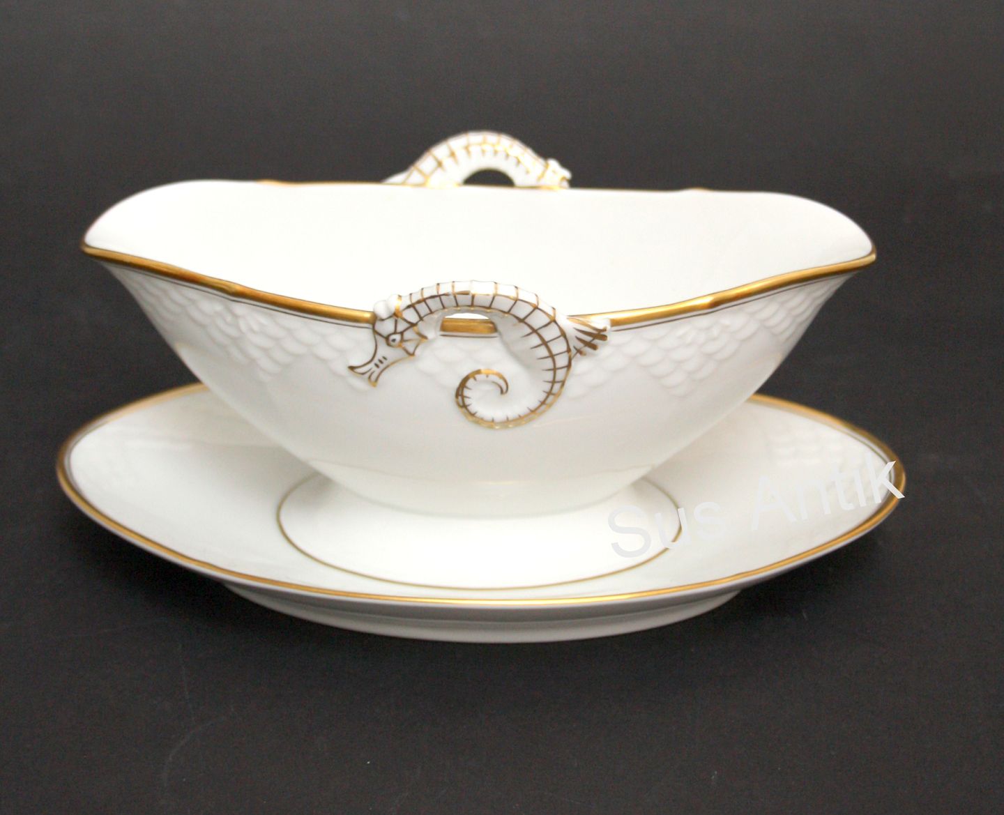 Bing & Grøndahl, Hartmann, Sovsekande. Hvidt porcelæn med guldkant, samt guldstreg. Nr. 8. Længde 24 cm. Højde 11 cm. I. sortering. Pris: 375 kr. stk. Lager: 1