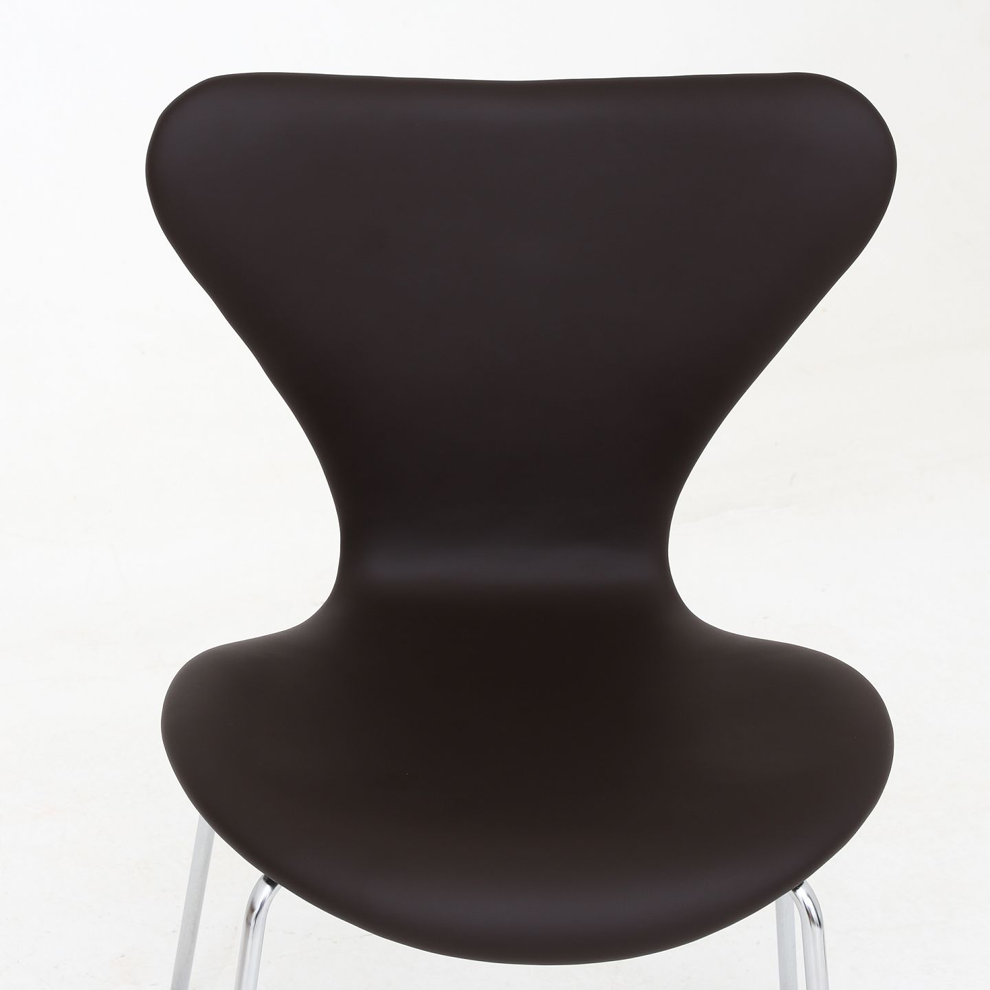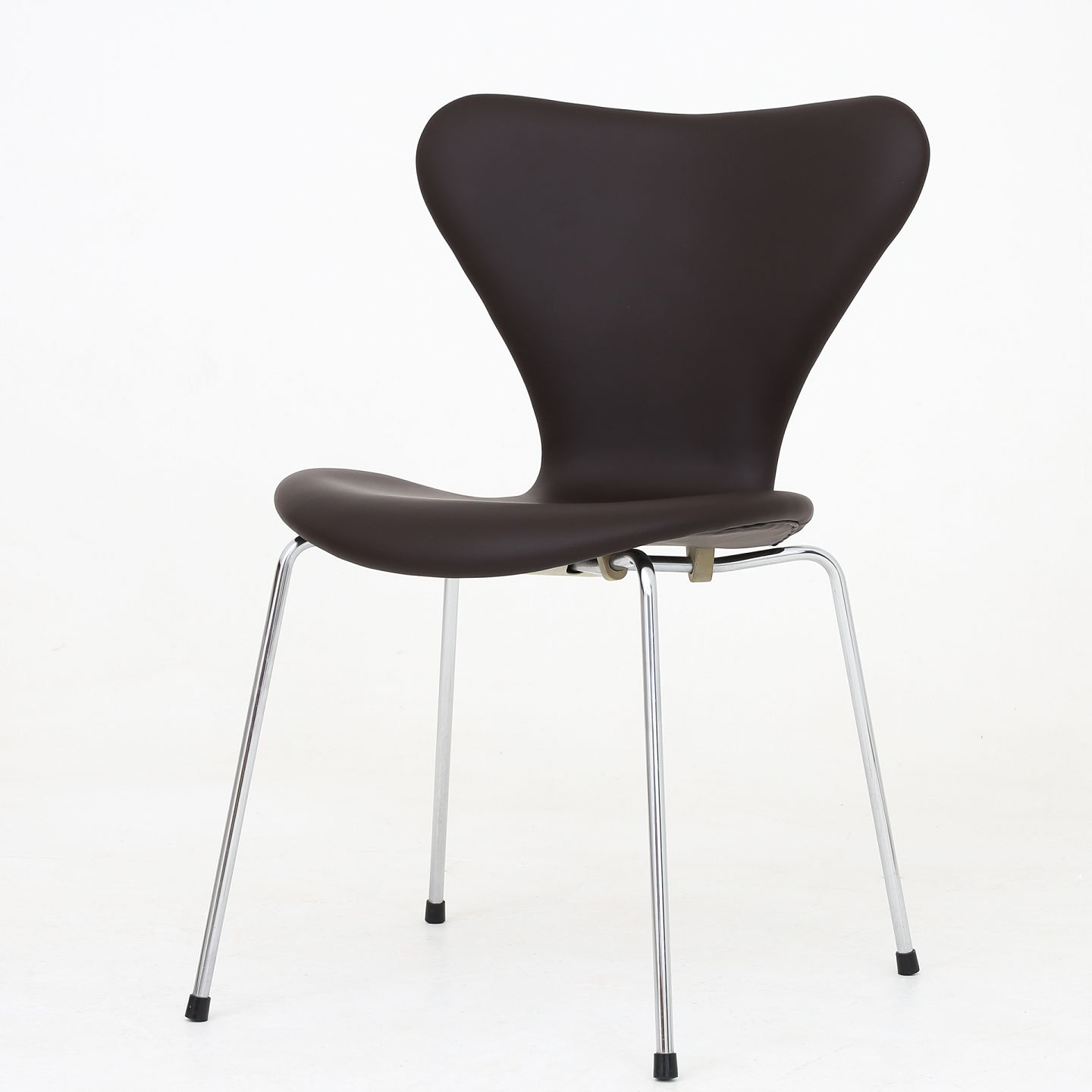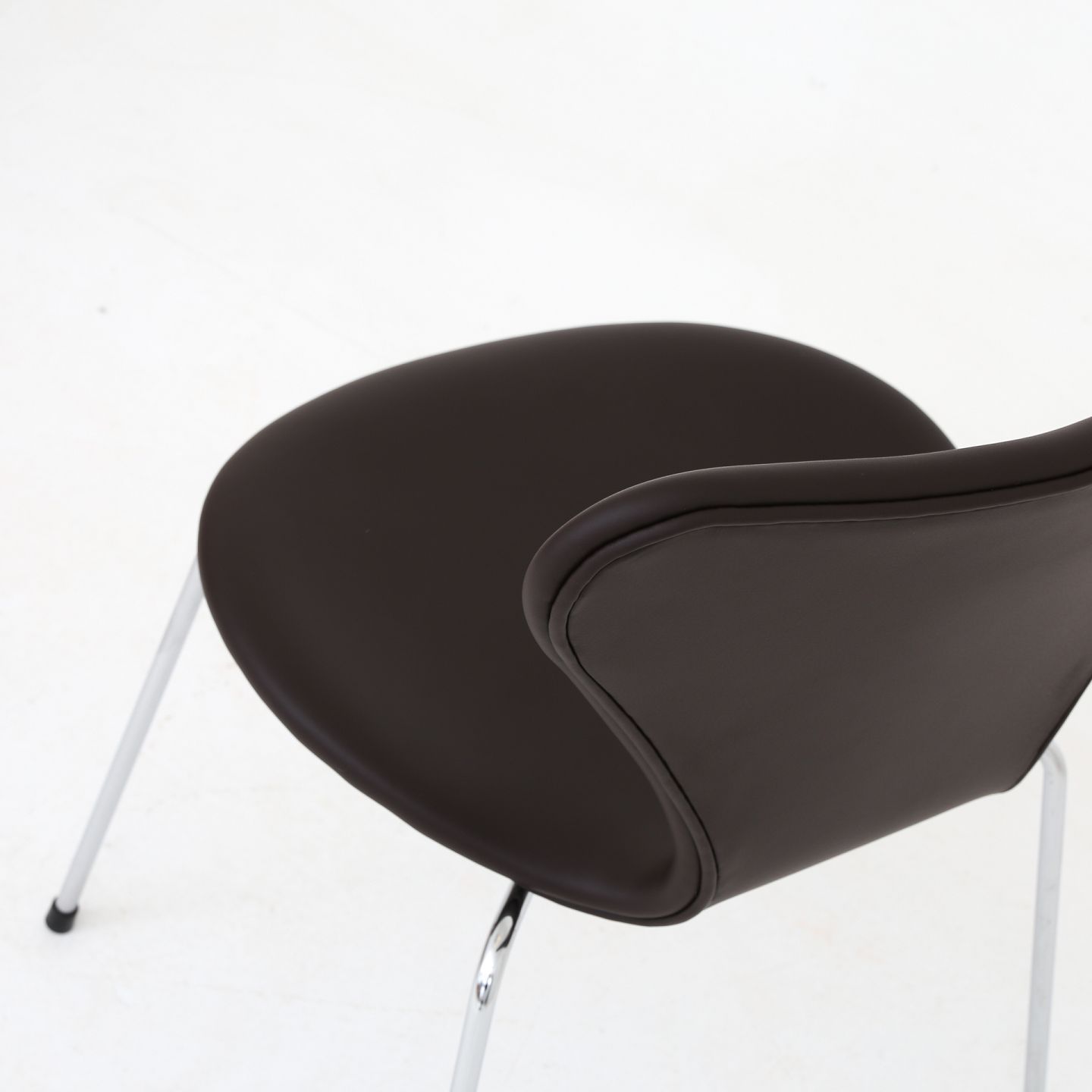 AJ 3107 - Reupholstered 'Seven' dining chair in Savanne leather (color: Coffee) and legs in steel. KLASSIK offers upholstery of the chair in fabric or leather of your choice.