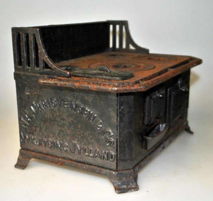 Fungerende støbejerns barne komfur, J. A. Christensen & Co., Nykjøbing Jylland, 1889.