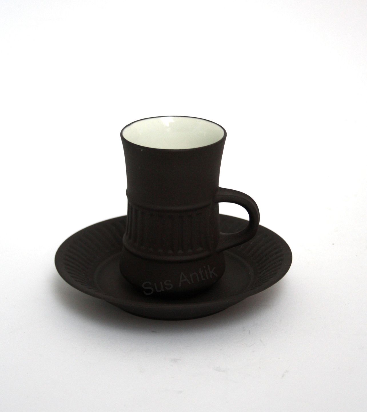 Eslau Danmark, Flamestone, Mokka/kaffekop. Indvendig hvid glasur, yderside i rå uglaseret stentøj. Designet af Jens Harald Quistgaard i 1950,erne. Signeret IHQ, Dansk Designs, Denmark.