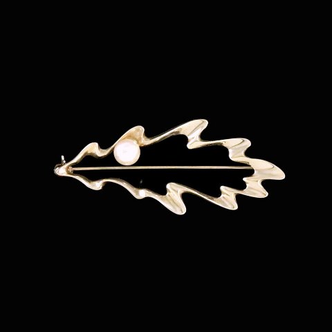 Hermann Siersbøl. Broche i 14k guld med perle.