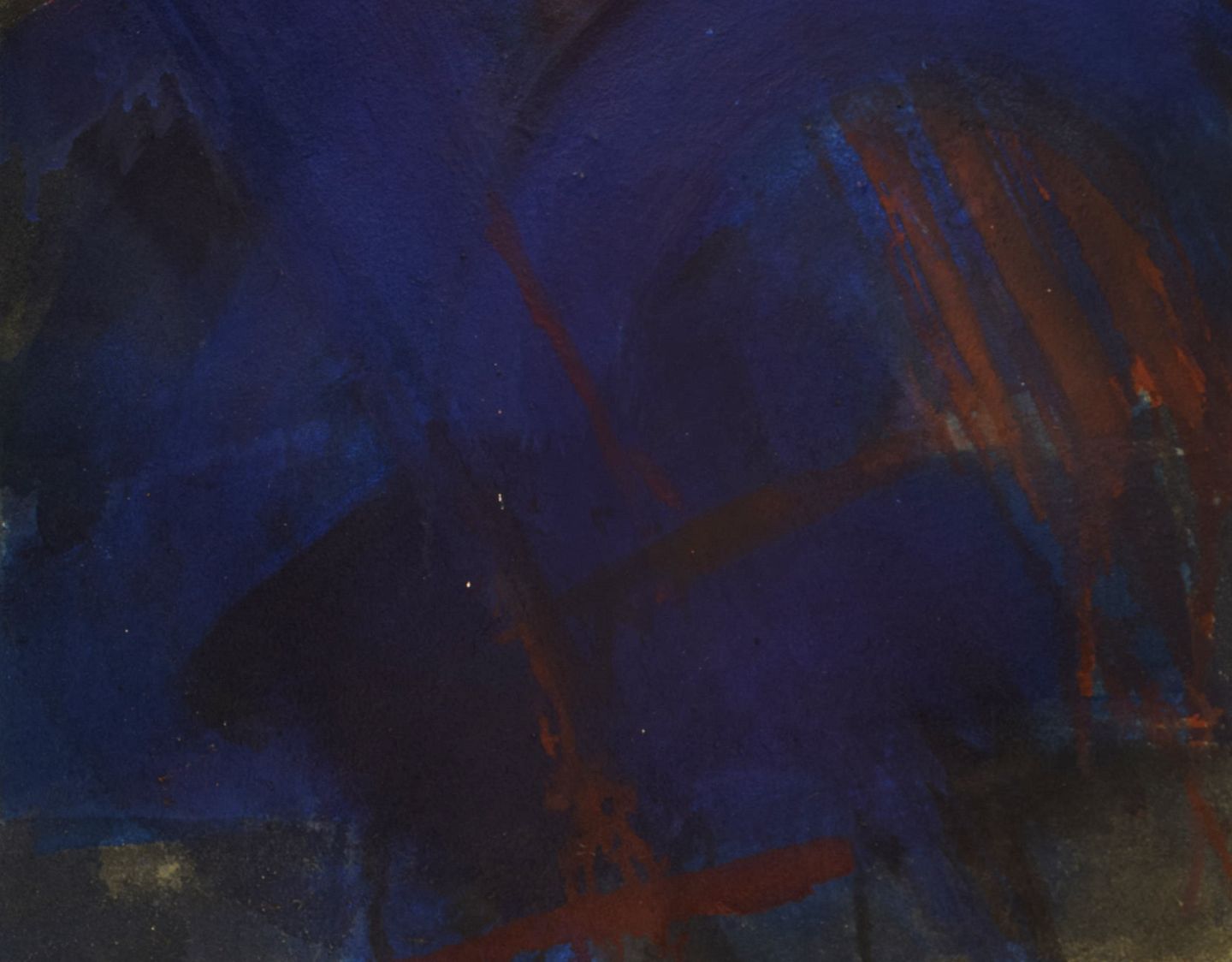 Ole Bjørn Krüger (1922-2007), Dansk kunstner. Olie på japanpapir lagt på plade. Modernistisk komposition. 1960/70'erne.