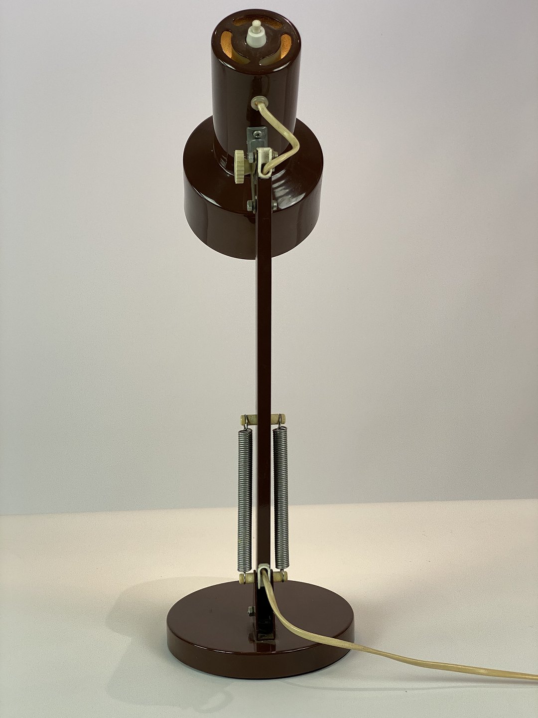 Bordlampe i brun lakeret metal, af dansk design fra 1970erne.