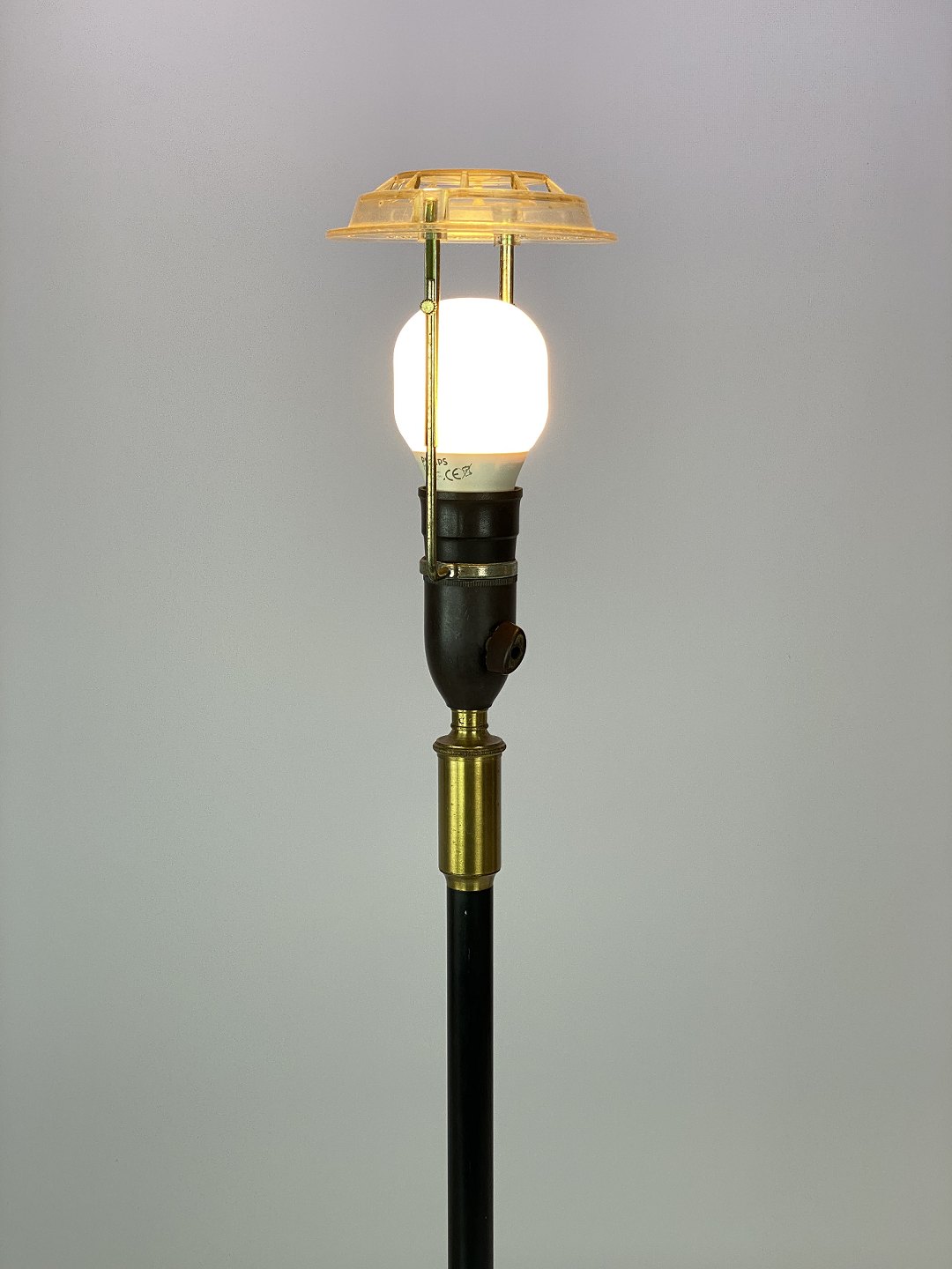 Bordlampe med stel af sort metal og messing med papir skærm, af dansk design af Le Klint fra 1960erne.