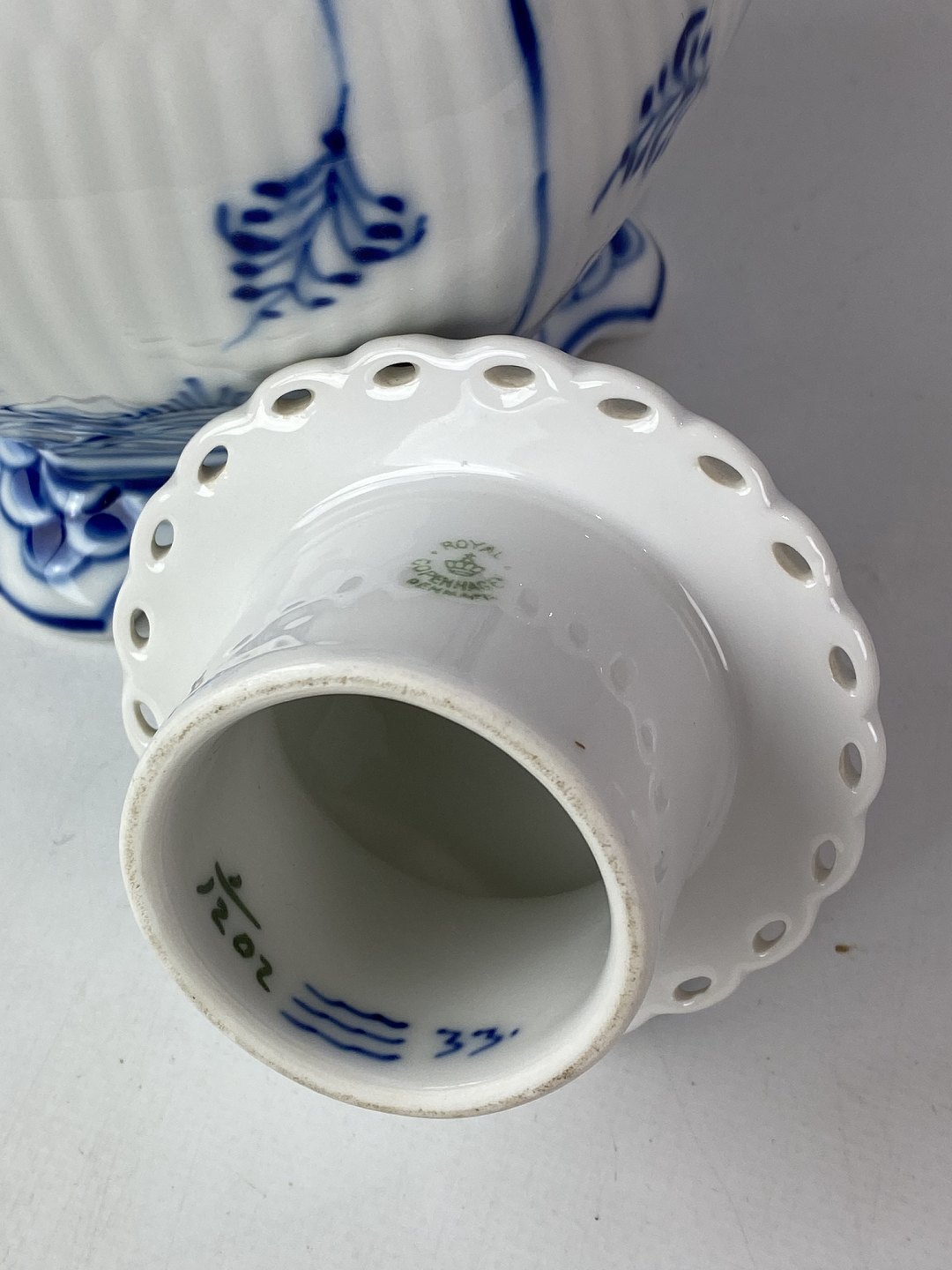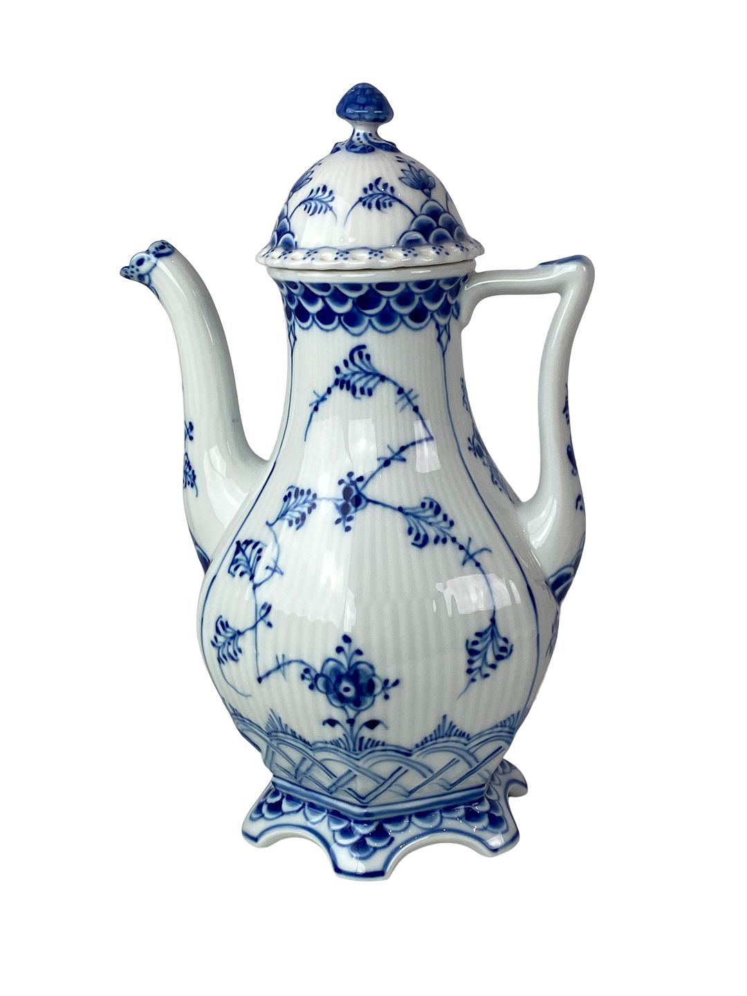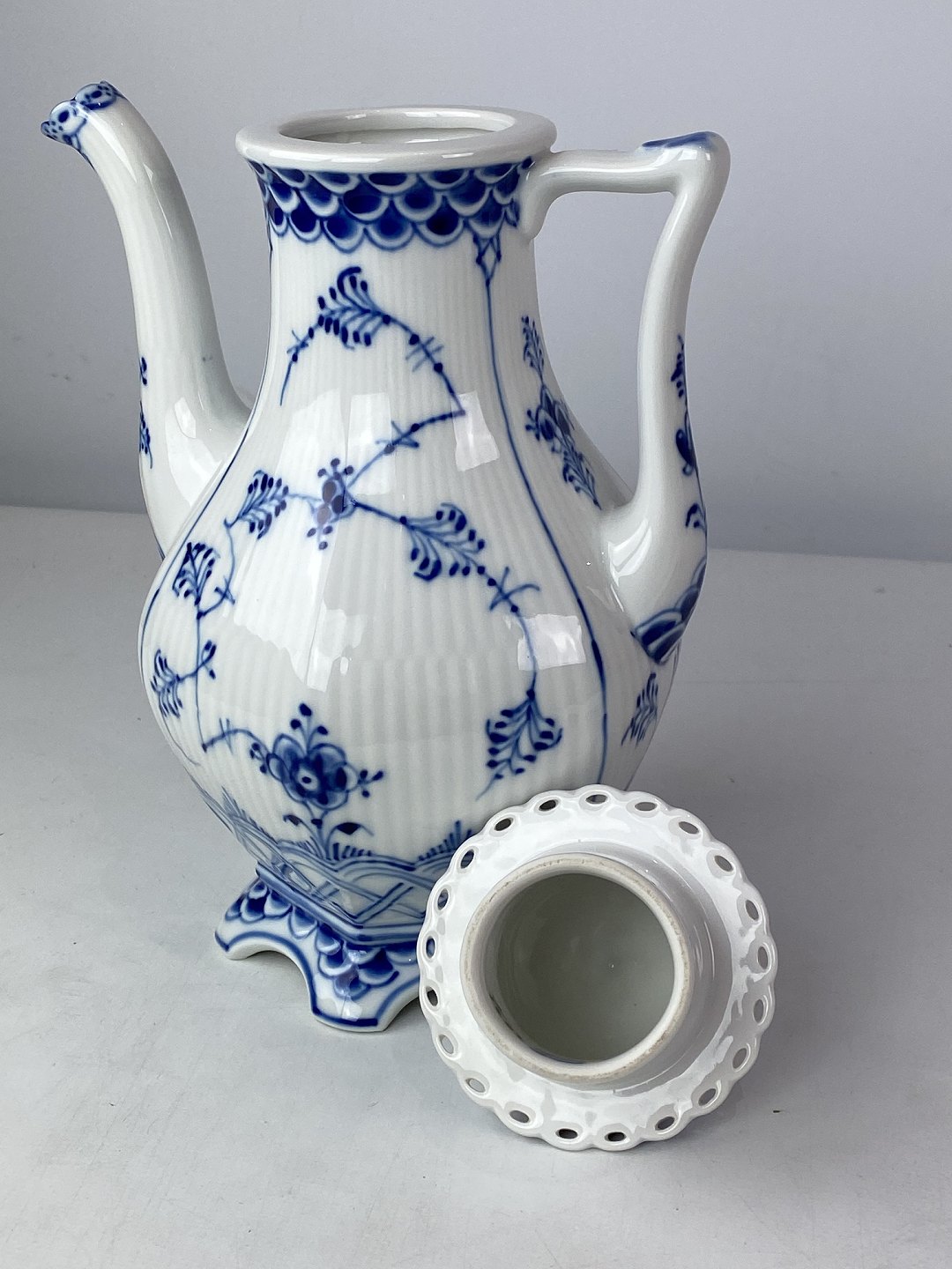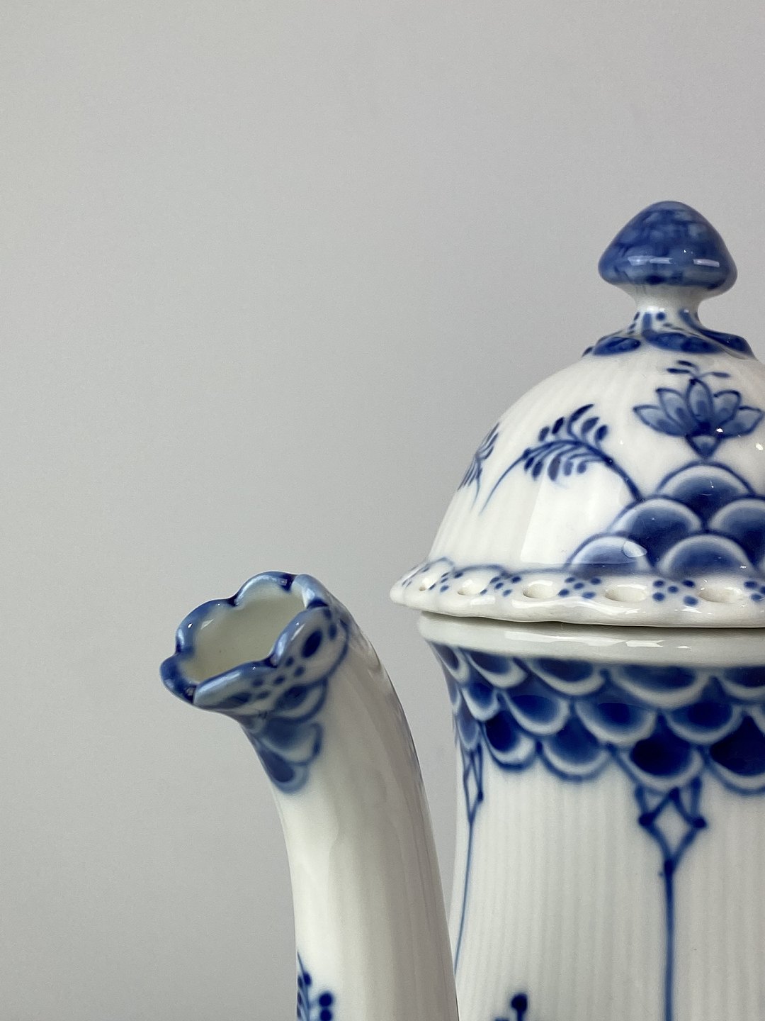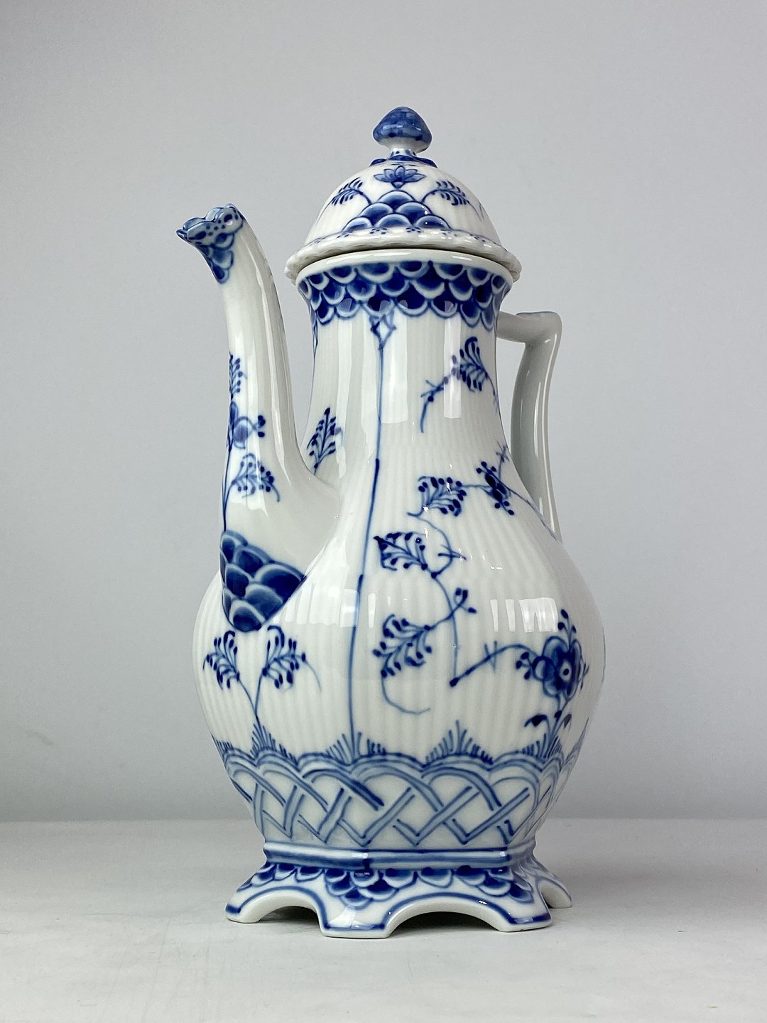 Kgl. Musselmalet helblonde kaffekande, nr.: 1/1202. Kanden er i flot brugt stand.