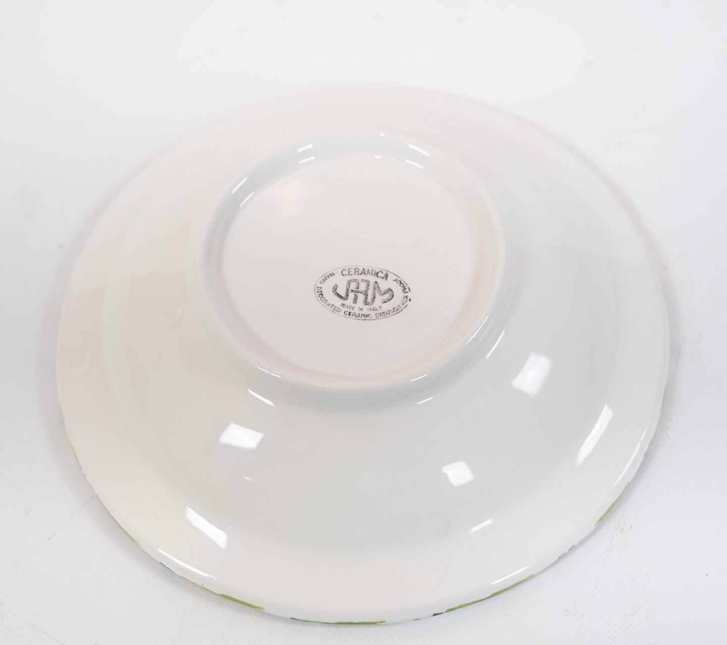 Frokosttallerken i lyse farver af italiensk porcelæn.
