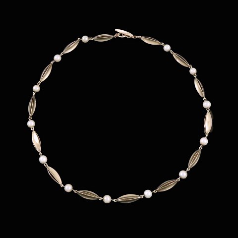 Th. Skat-Rørdam. Halskæde i 14k Guld med perler.