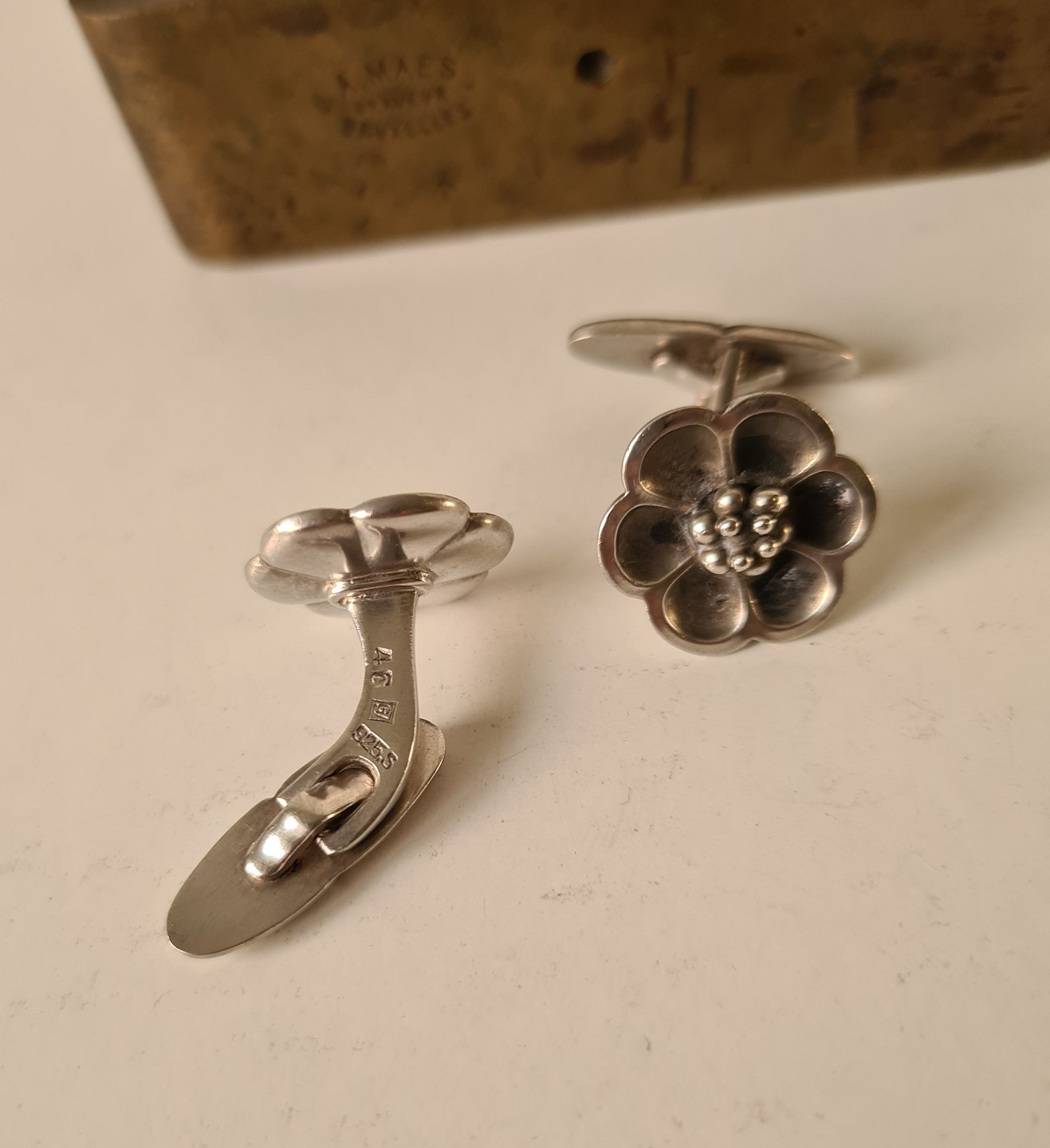 Georg Jensen sølv manchetknapper i form af blomst no. 46 - 1930-45