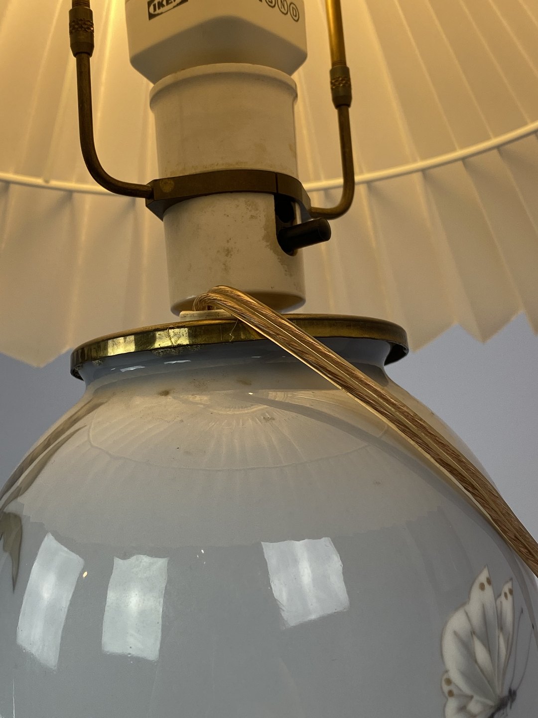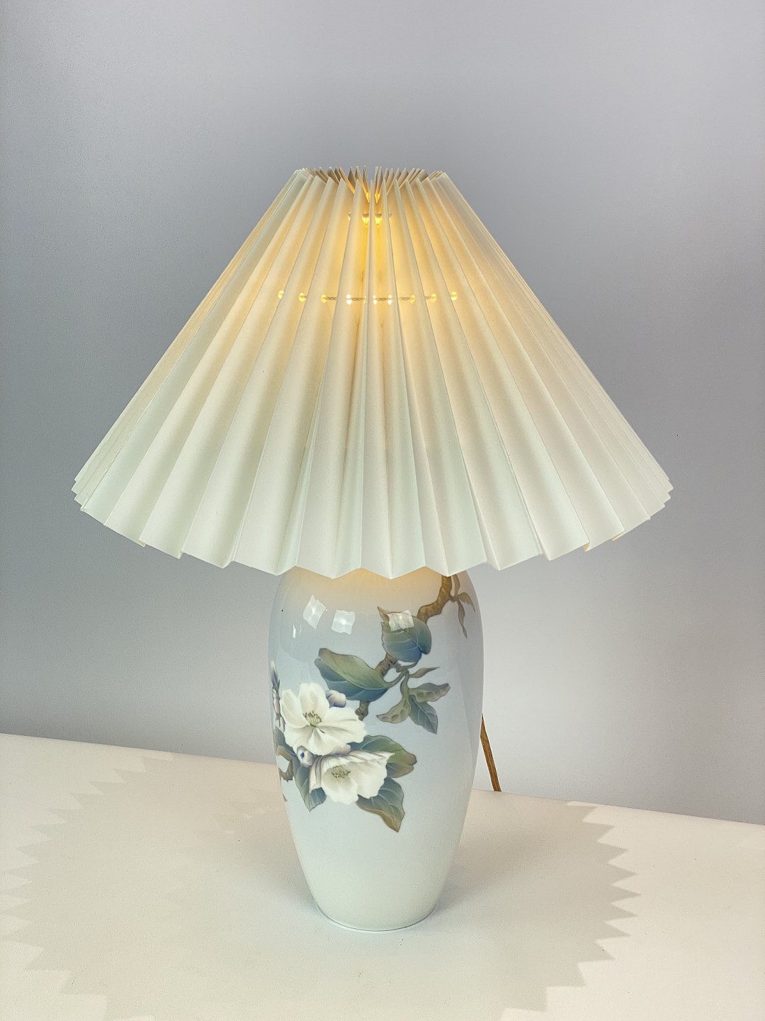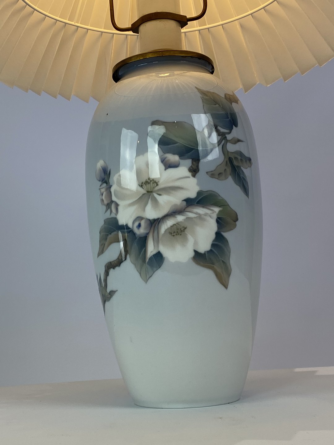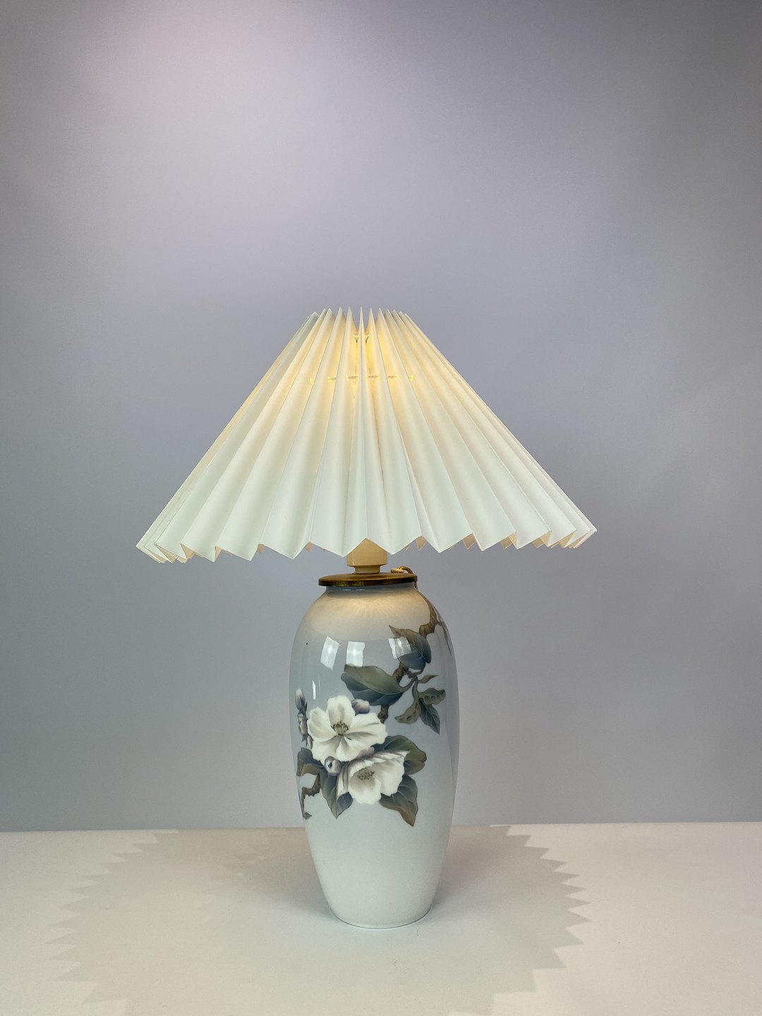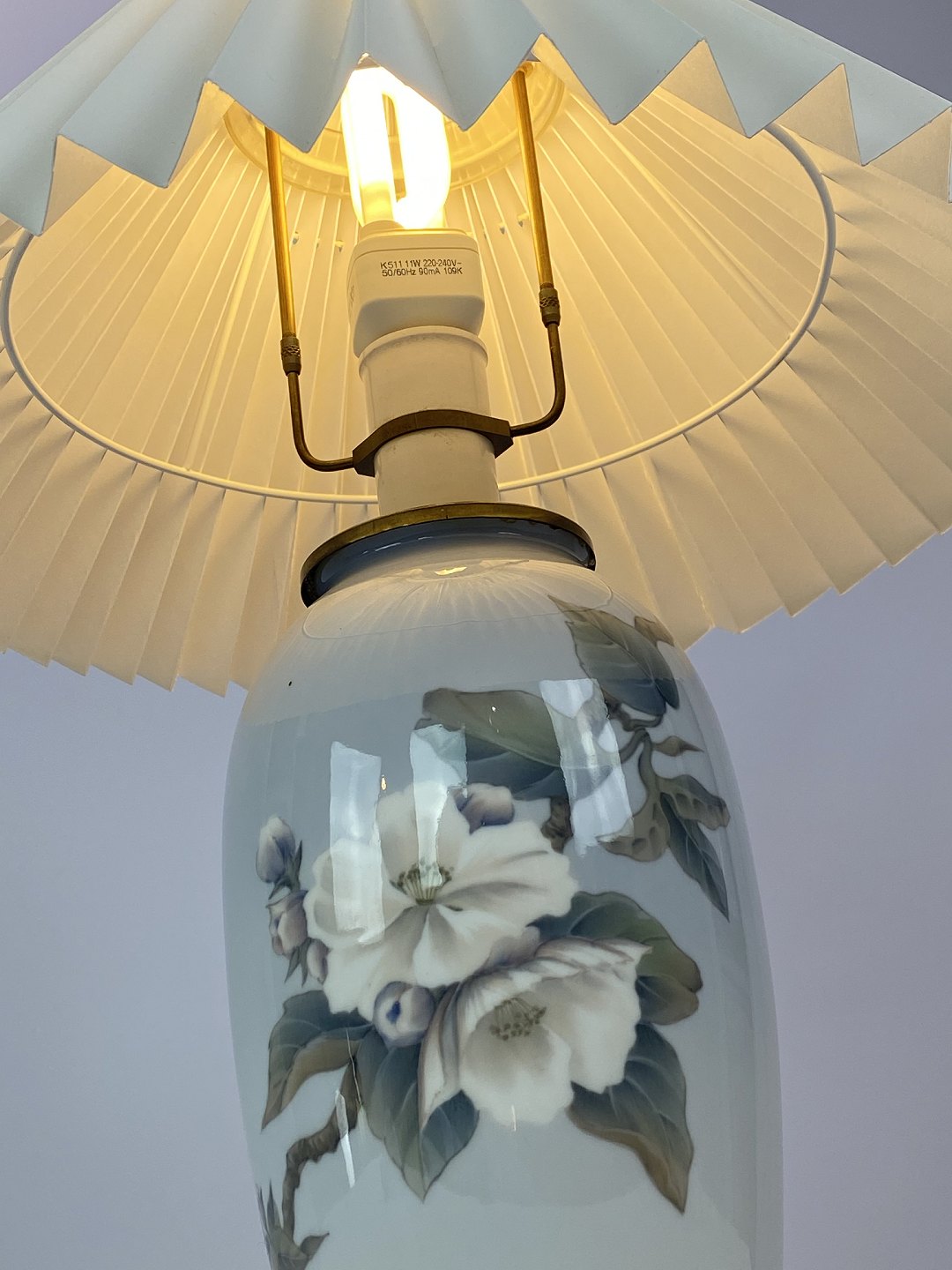 Kgl. porcelæn lampe, nr.: 2655/1224, med blomster motiv og papir skærm.