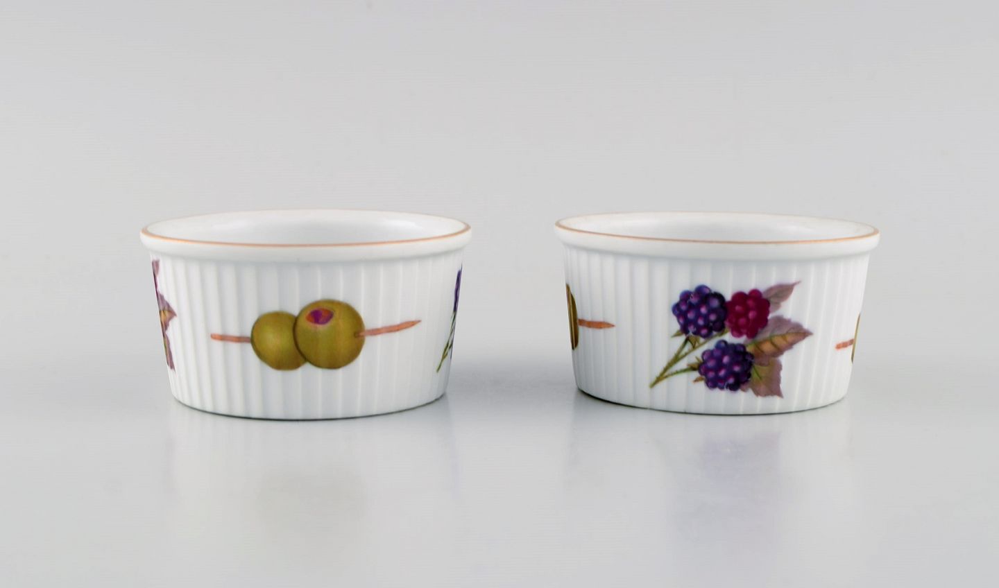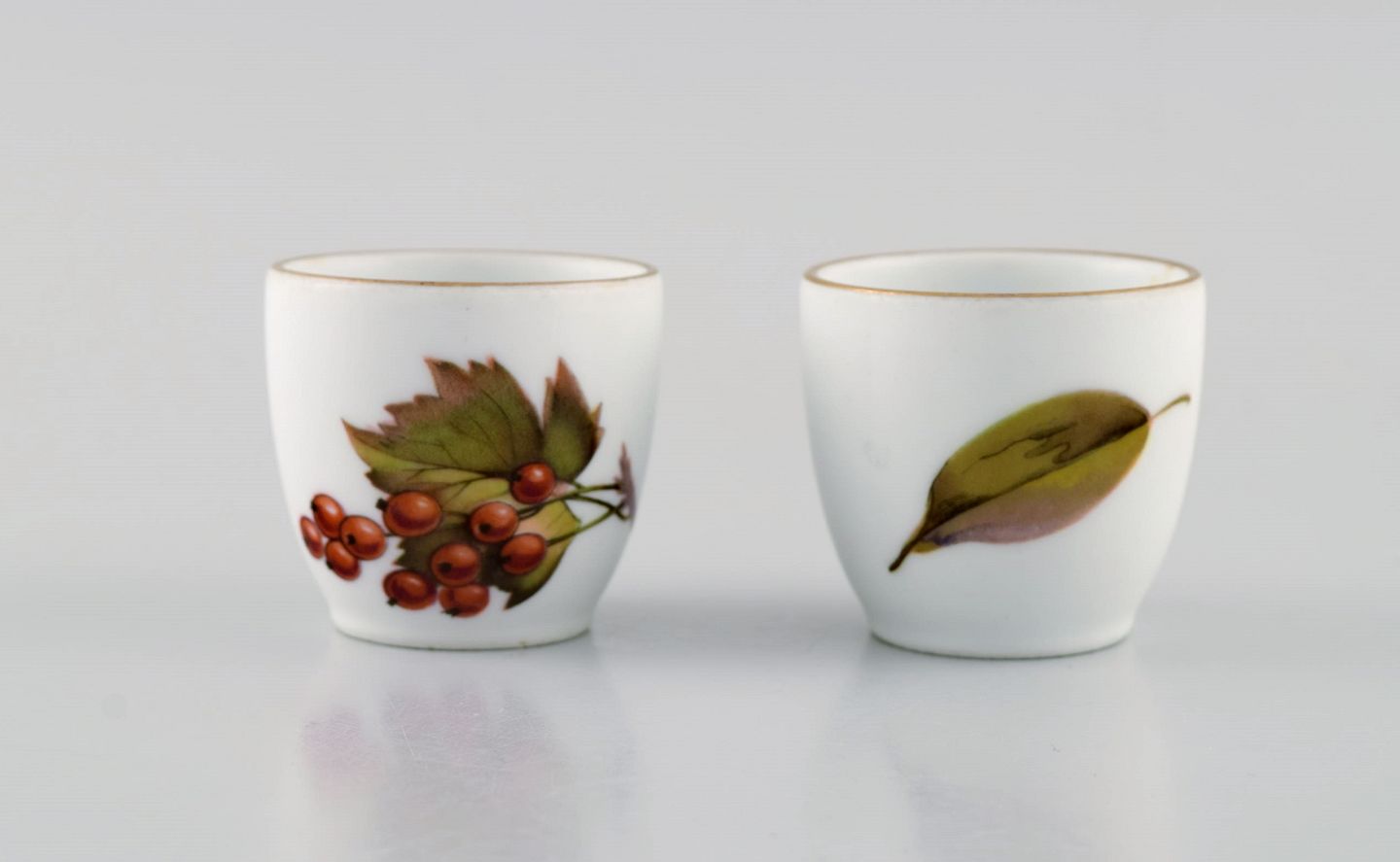 Royal Worcester, England. Syv dele Evesham porcelæn dekoreret med frugter og guldkant. 1960'erne.