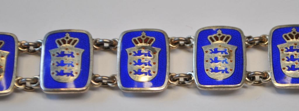 Armbånd i sterling sølv, 20. årh. Moritz R. Henriques, København (1958 -), Danmark. Emaljearbejde med Det danske Rigsvågen. Stemplet. L.: 17 cm.