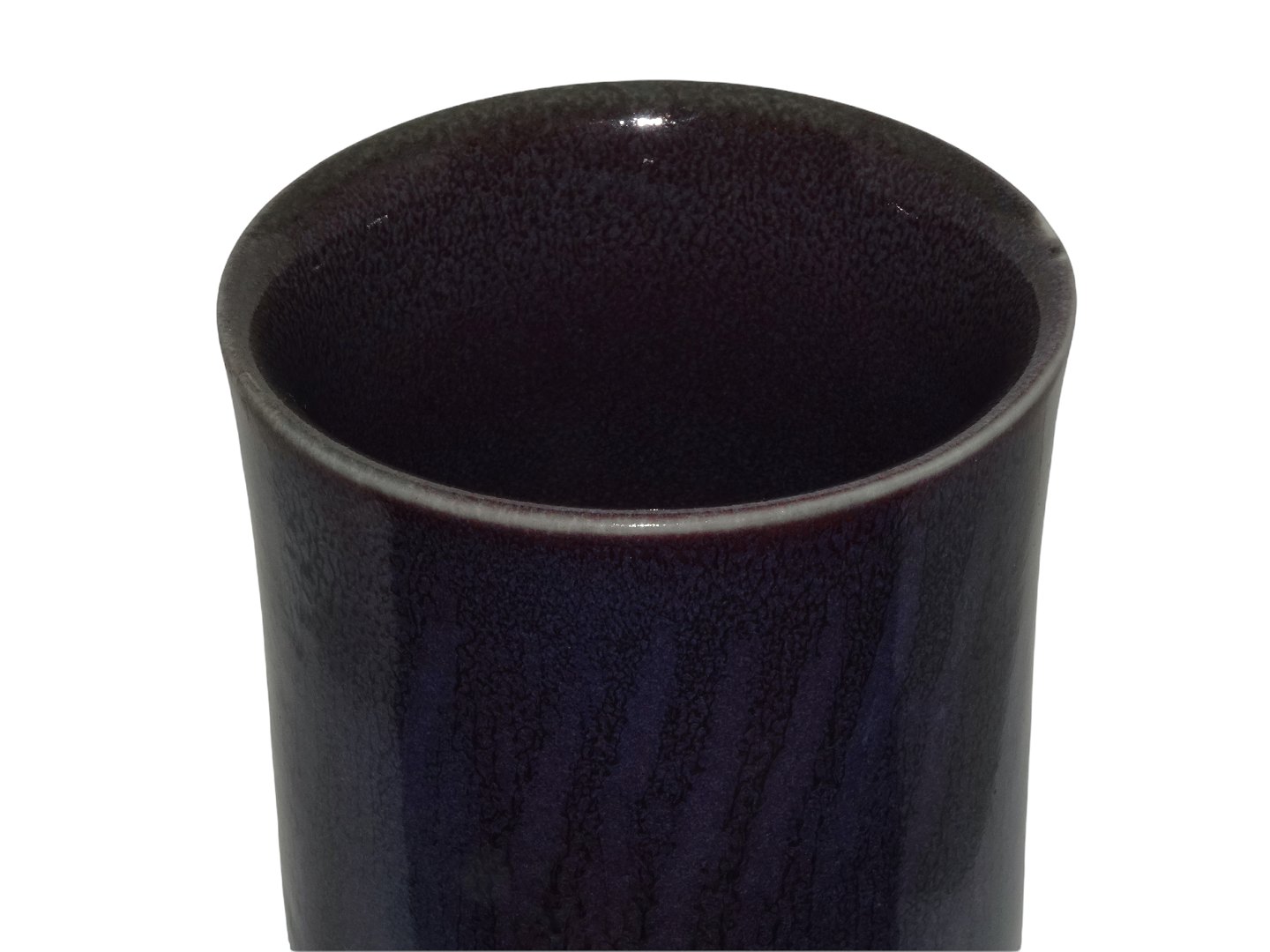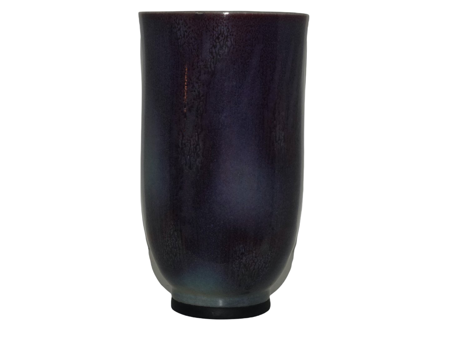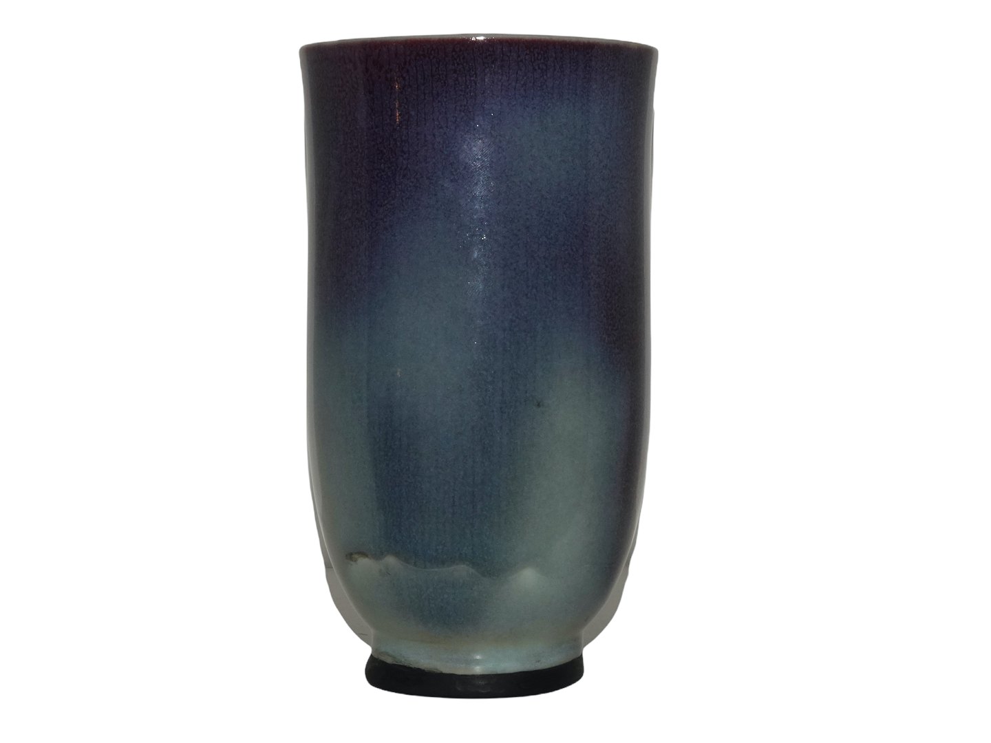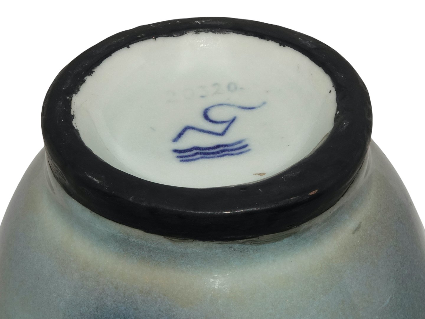 Der er en reperation på bunden ved den sorte kant. Derudover er der en brændingsfejl i glasuren på siden, se billeder. Ellers perfekt stand uden fejl.
