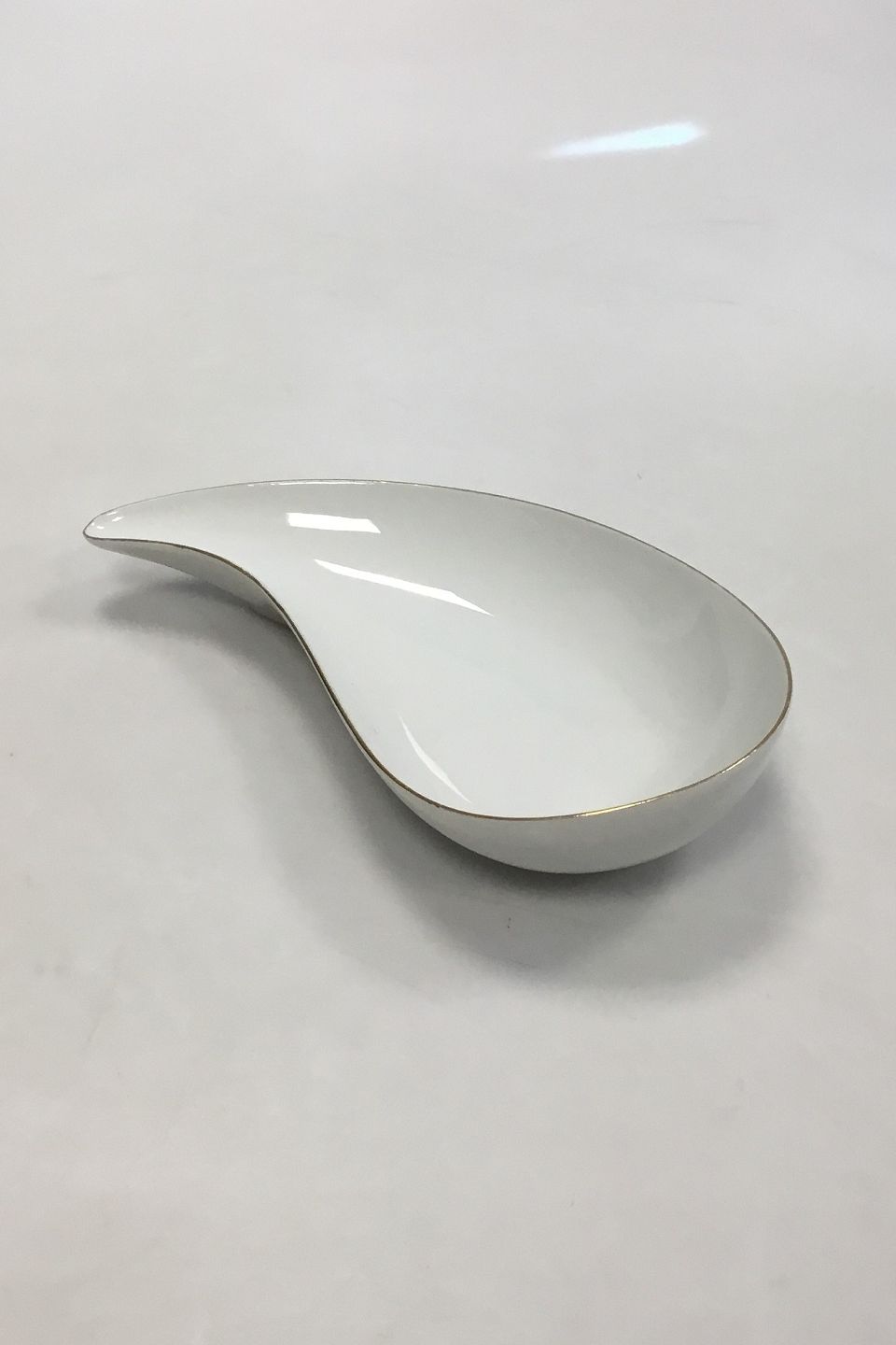 Bing & Grondahl White plain pattern with gold Kidney Shaped Bowl No 39. Measures 19 cm / 7 31/63 in.