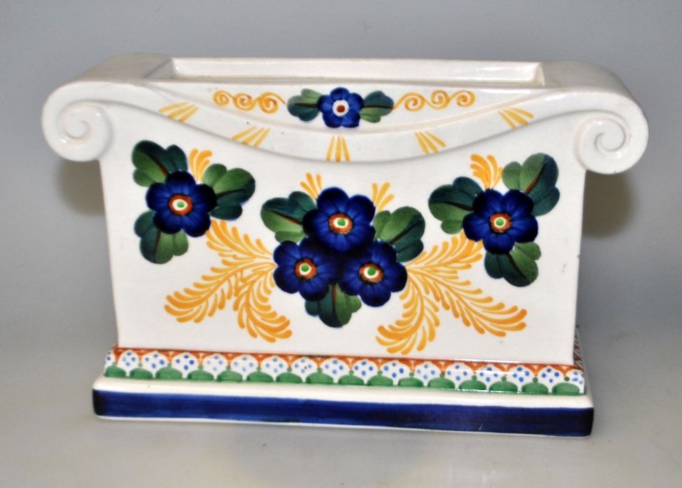 Aluminia jardiniere, 625/472, 20th century Copenhagen, Denmark. Polychrome decorated faience. Rectangular. Stamped. 22 x 8 x 14 cm.