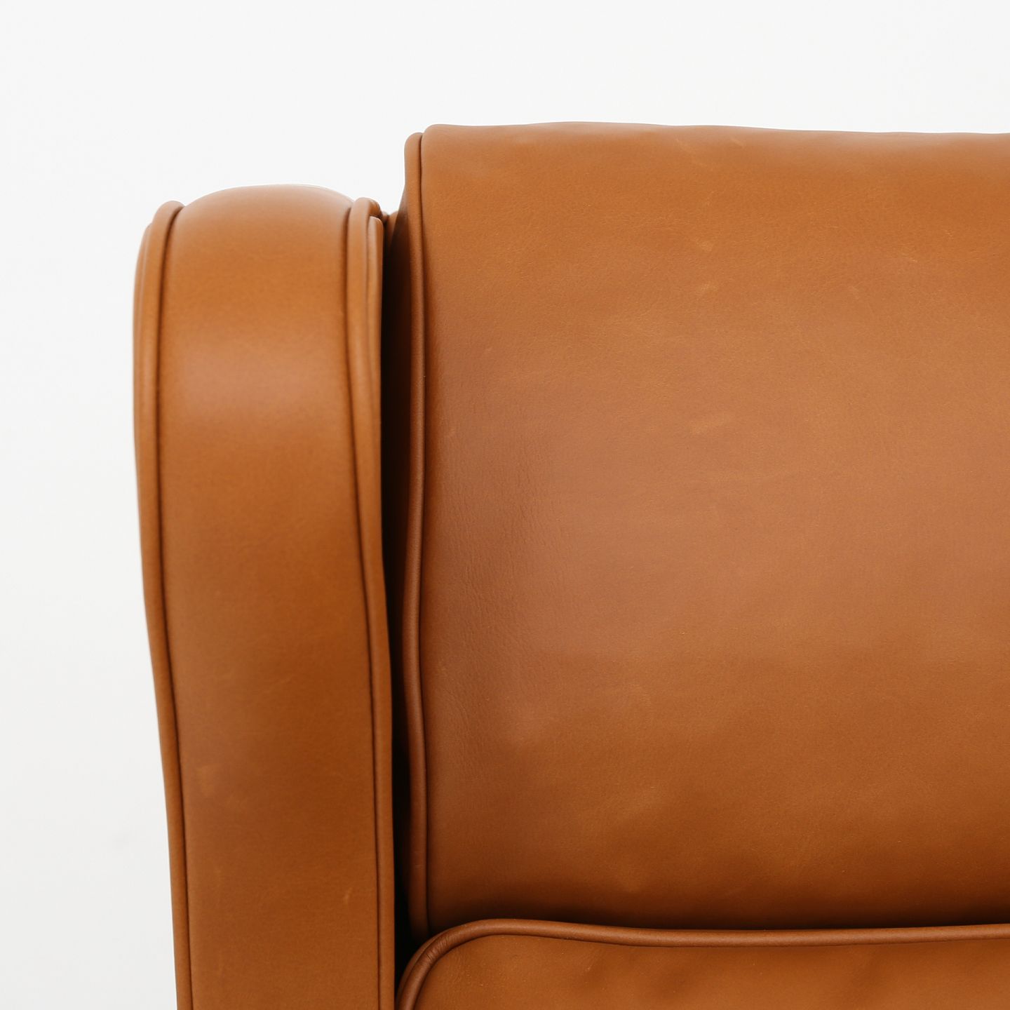 BM 2204 - Reupholstered 'Wing-back chair' in Envy Cognac aniline leather. KLASSIK offers upholstery of the chair in fabric or leather of your choice.
