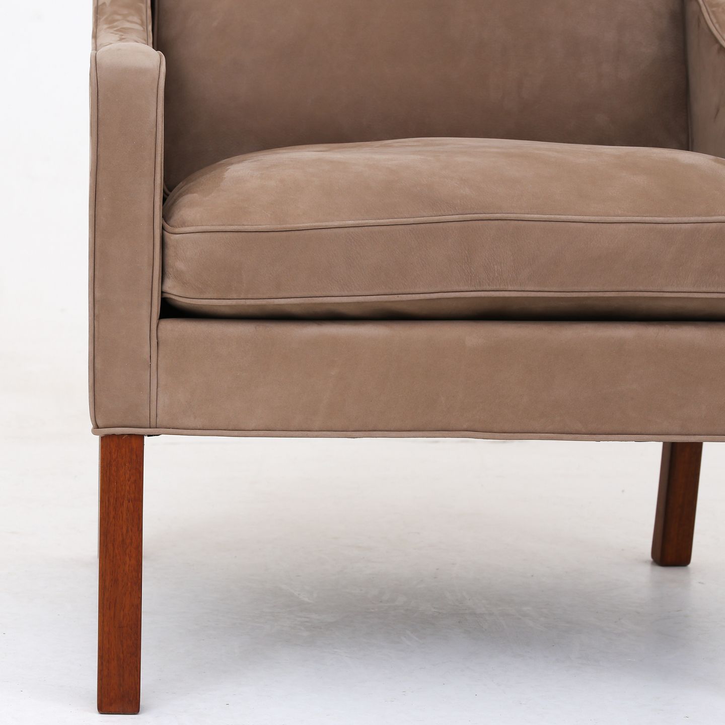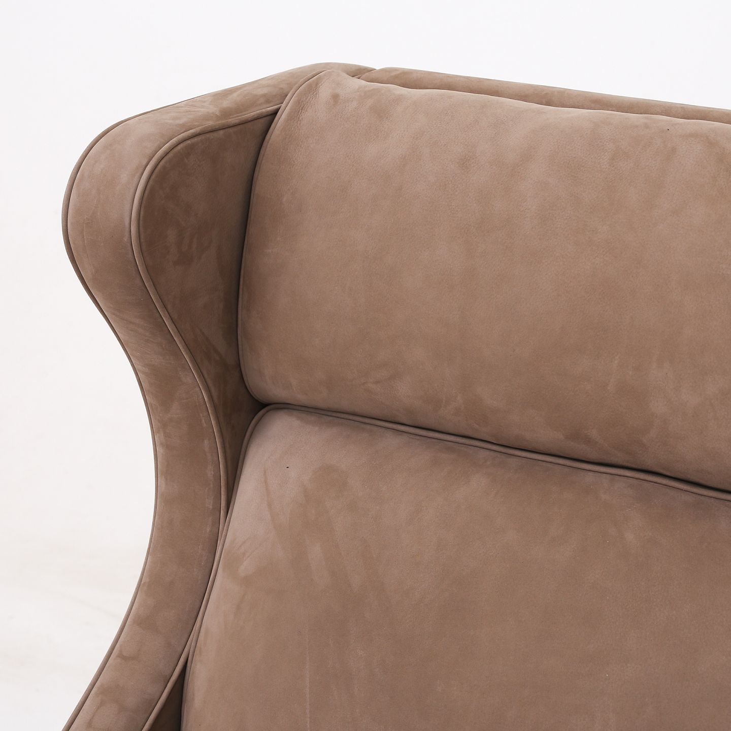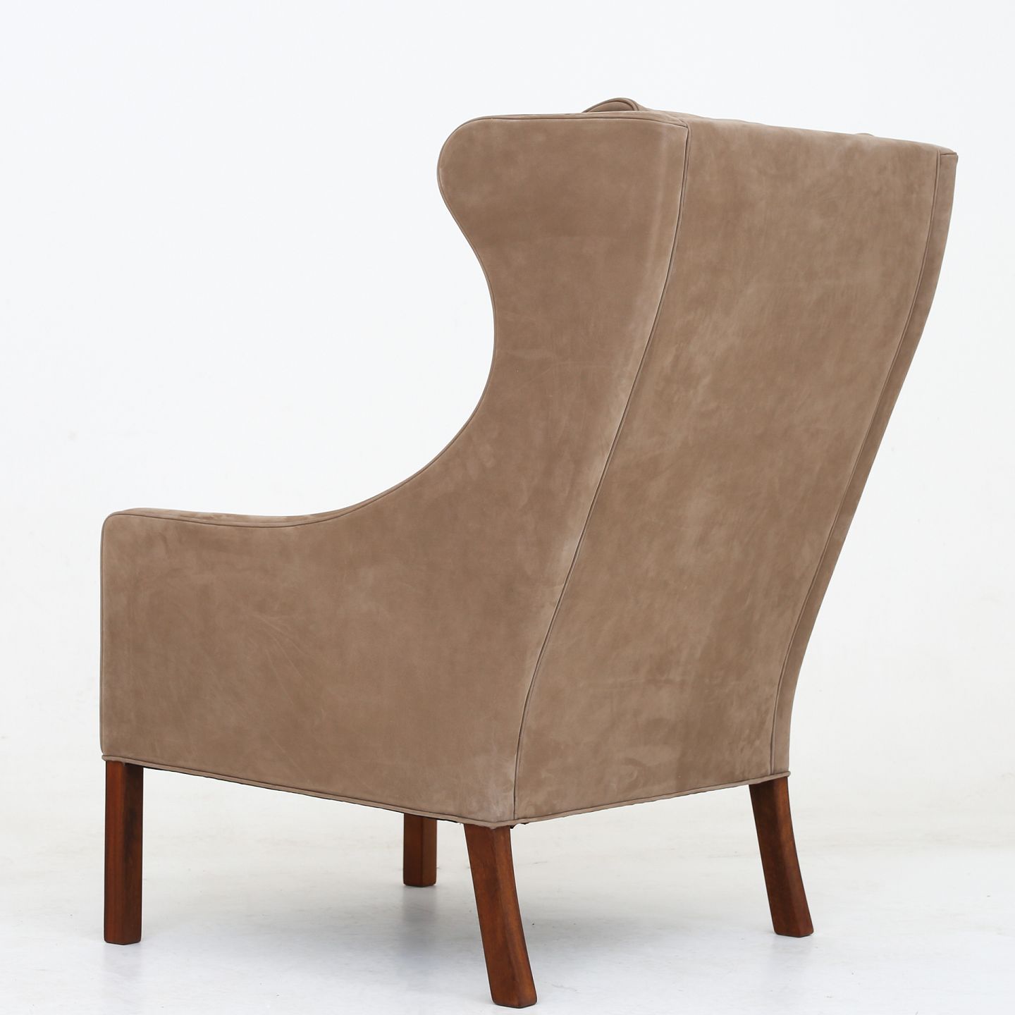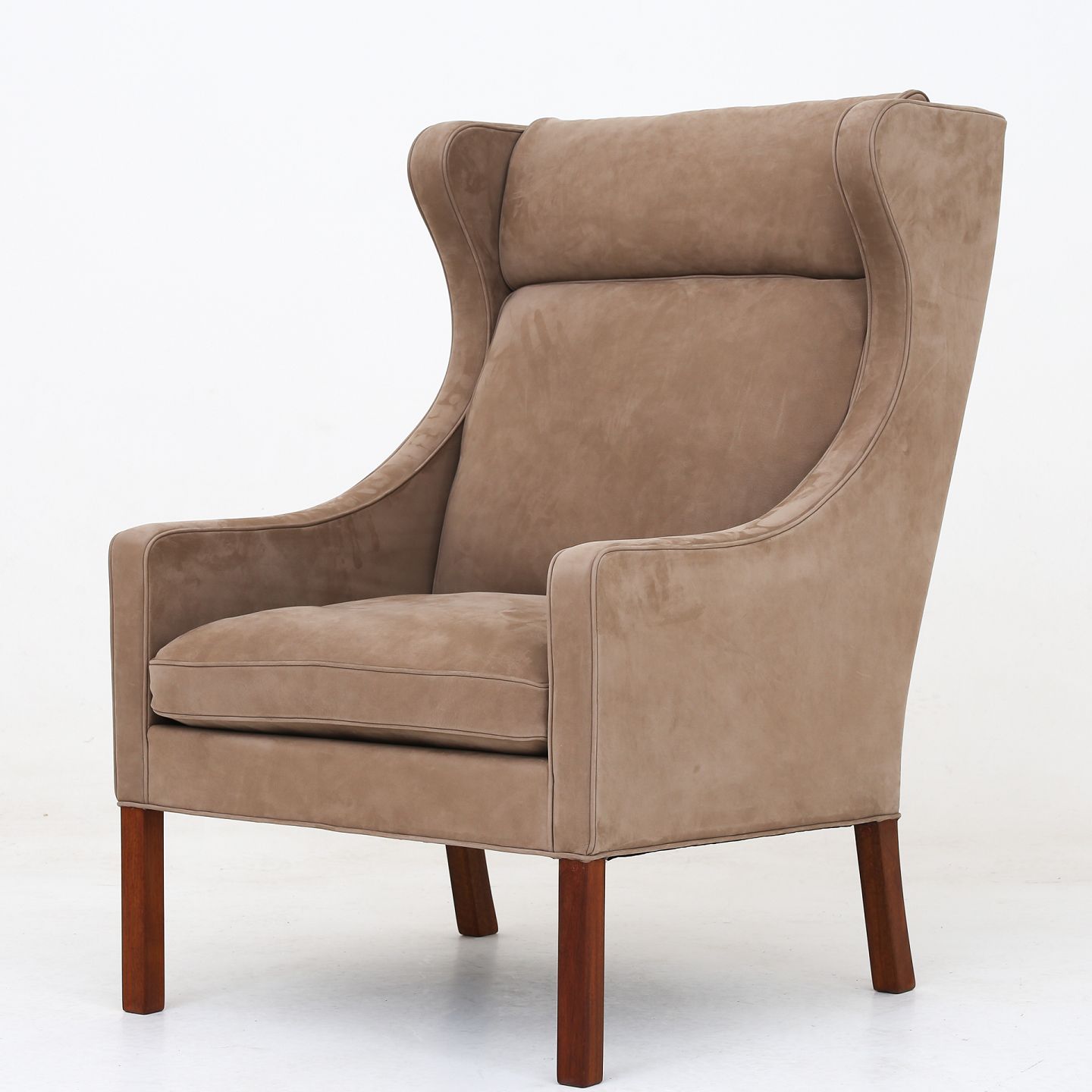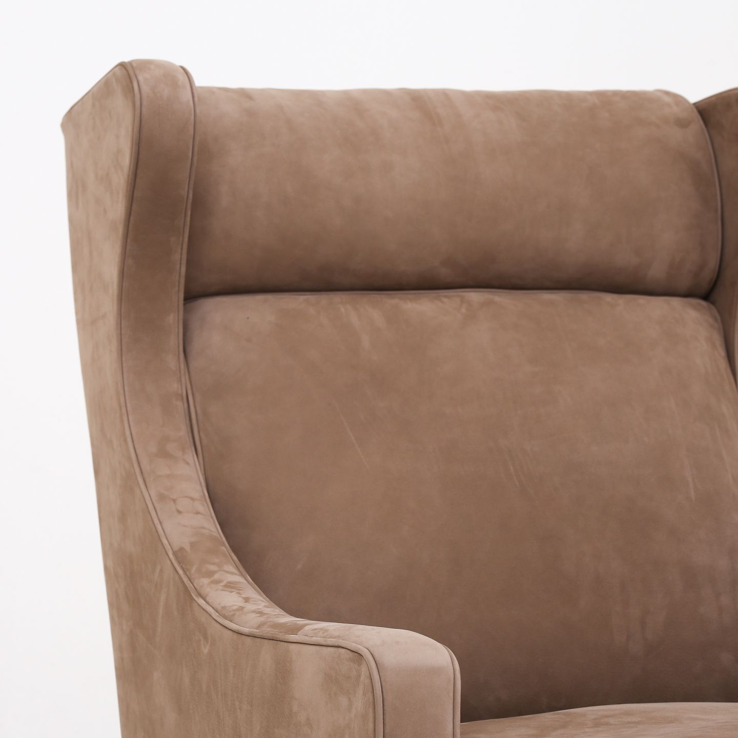 BM 2204 - Nybetrukket 'Øreklapstol' i Royal Nubuck anilinlæder. KLASSIK tilbyder polstring af stolen med stof eller læder efter eget valg.