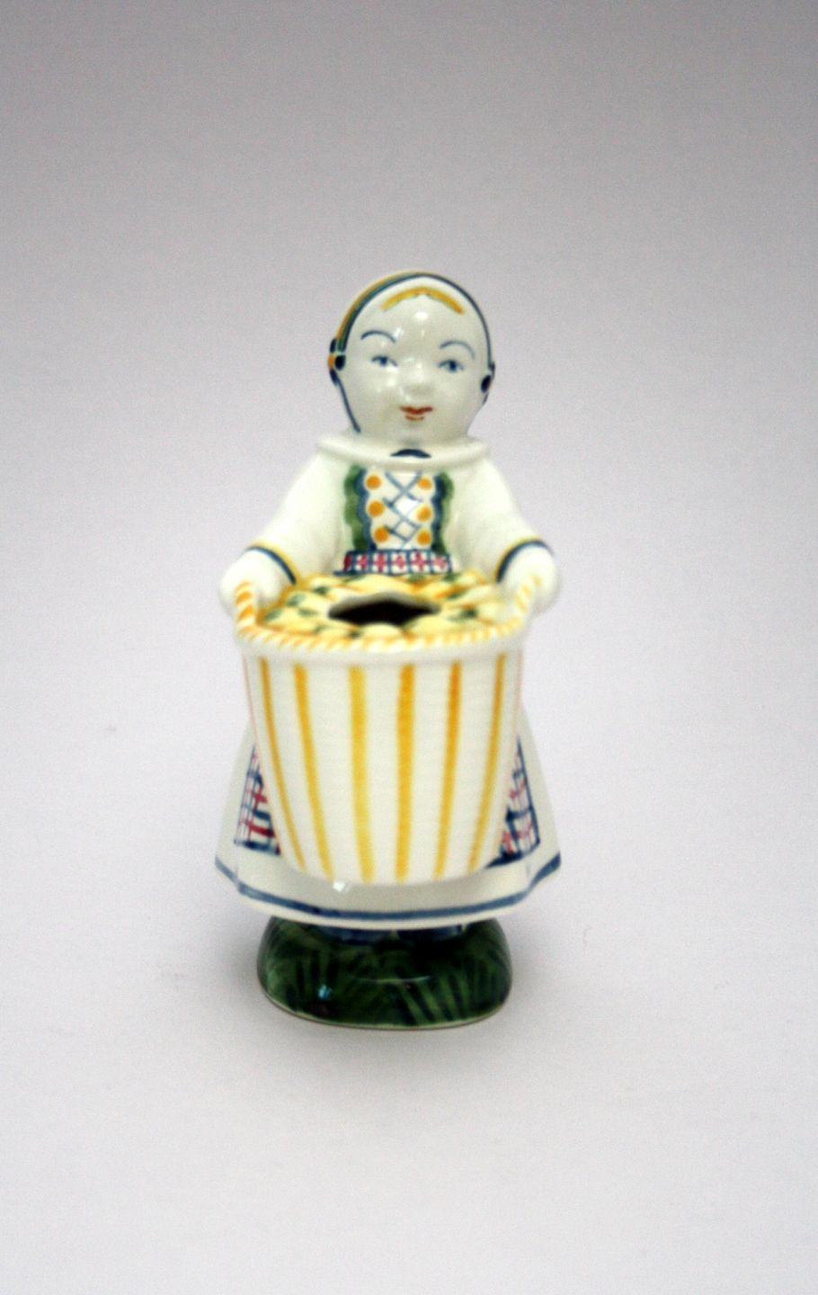 Text available in Danish: Kusine, Børnehjælpsfigur, Aluminia