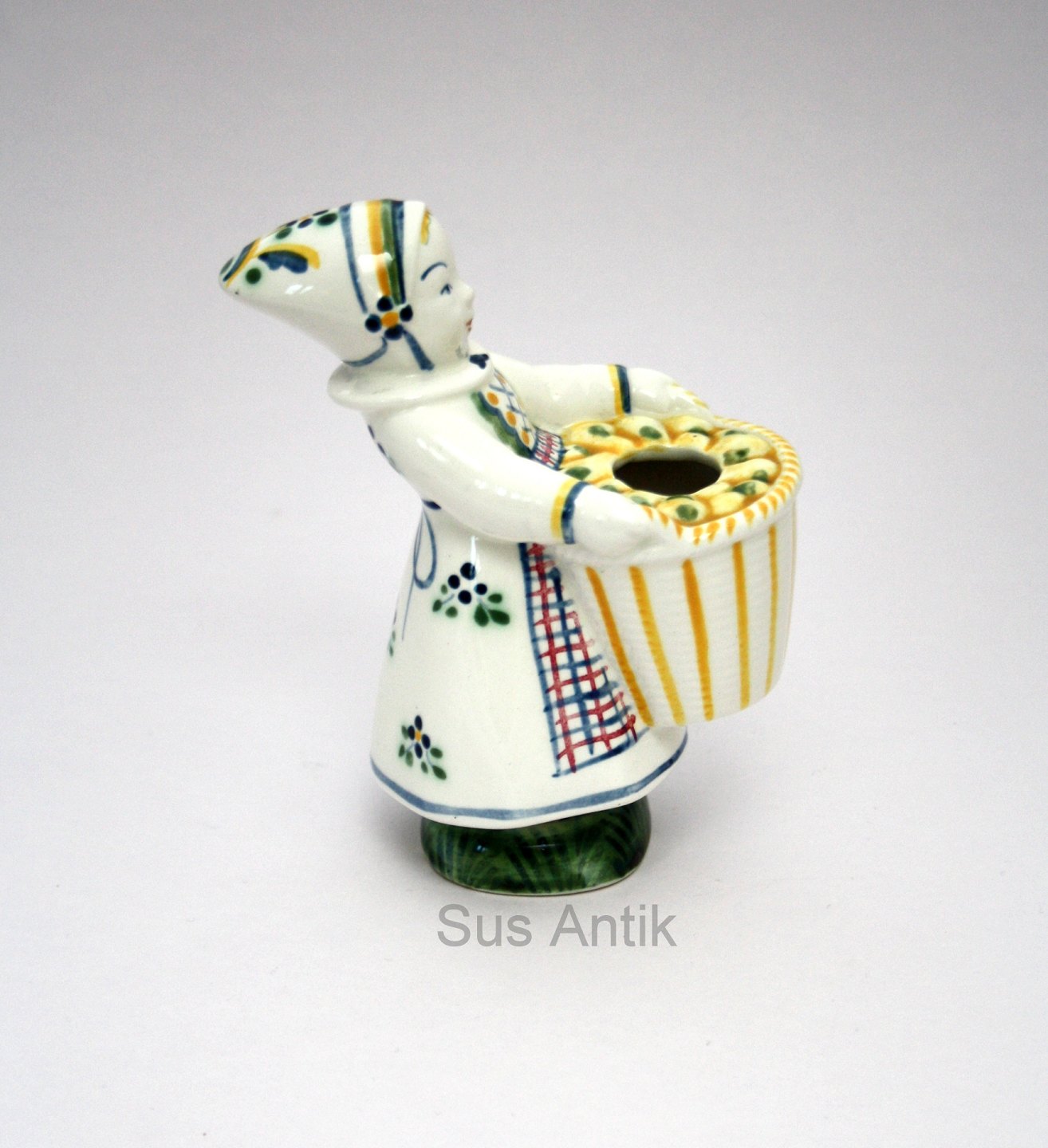 Text available in Danish: Aluminia, Børnehjælpsdag figur Kusine fra Amager 1943. Designet af Herluf Jensenius formgivet af Hans Henrik Hansen. Højde 13 cm. Lettere overfladekrakelering. Pris: 425 kr. pr. stk. Lager: 2