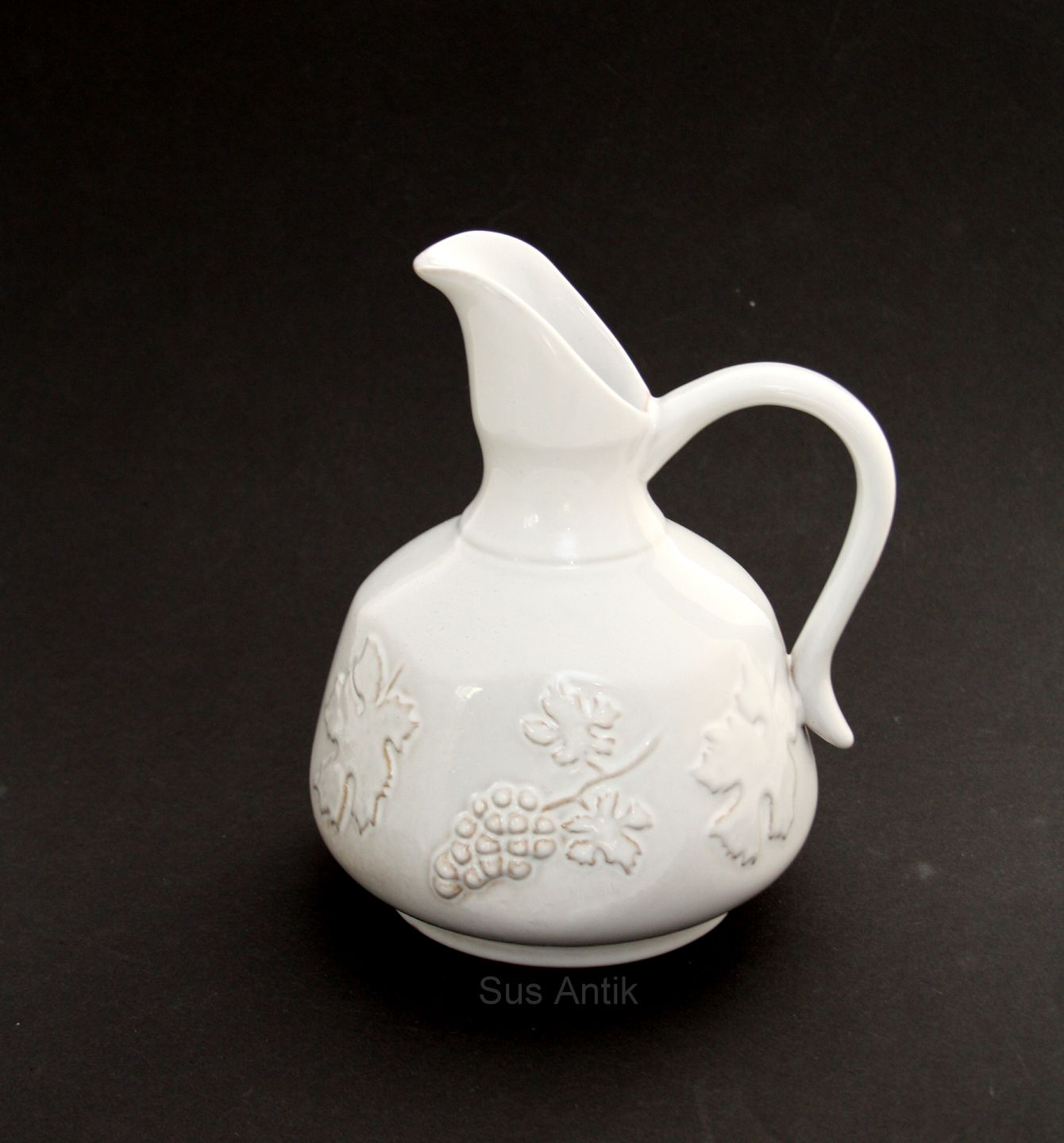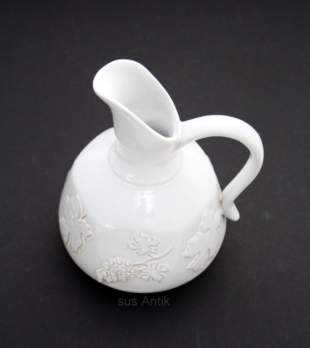 Knabstrup, Hvid kande vindrueklaser. Nr. 124.810. Højde 17,5 cm. Diameter bund 12,5 cm. Flot stand. Pris: 425 kr.