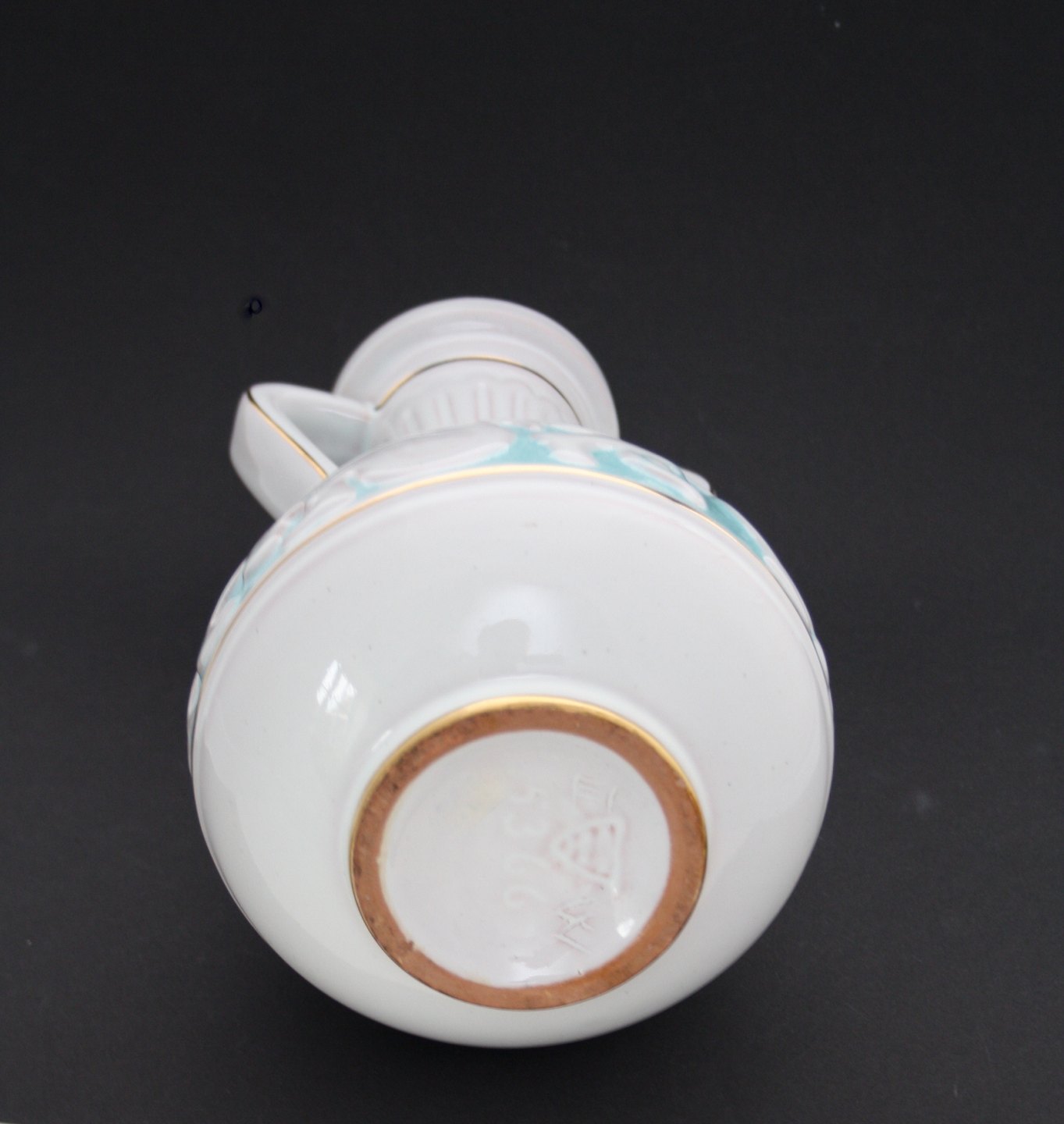 Michael Andersen & Søn. Hvid og turkisglaseret med guldkanter.