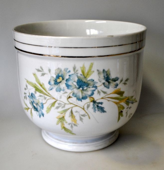 CT Altwasser flowerpot, 19th century Germany. White porcelain with floral motifs in transfer technique. With gildings. Stamped. H .: 15 cm. Dia .: 16.8 cm.
