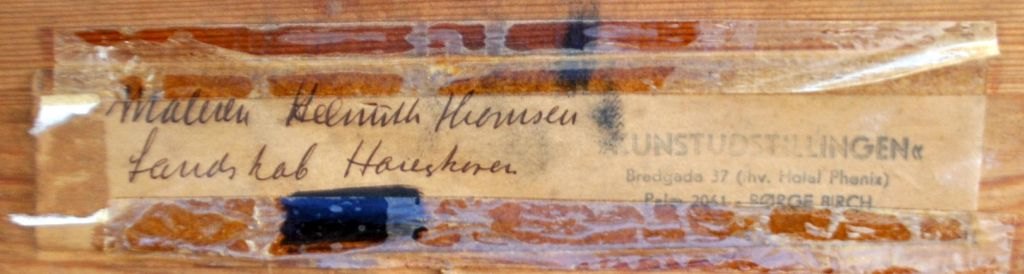Verso etiket med navn og titel fra Kunstudstillingen, Bredgade, København ved Børge Birch.