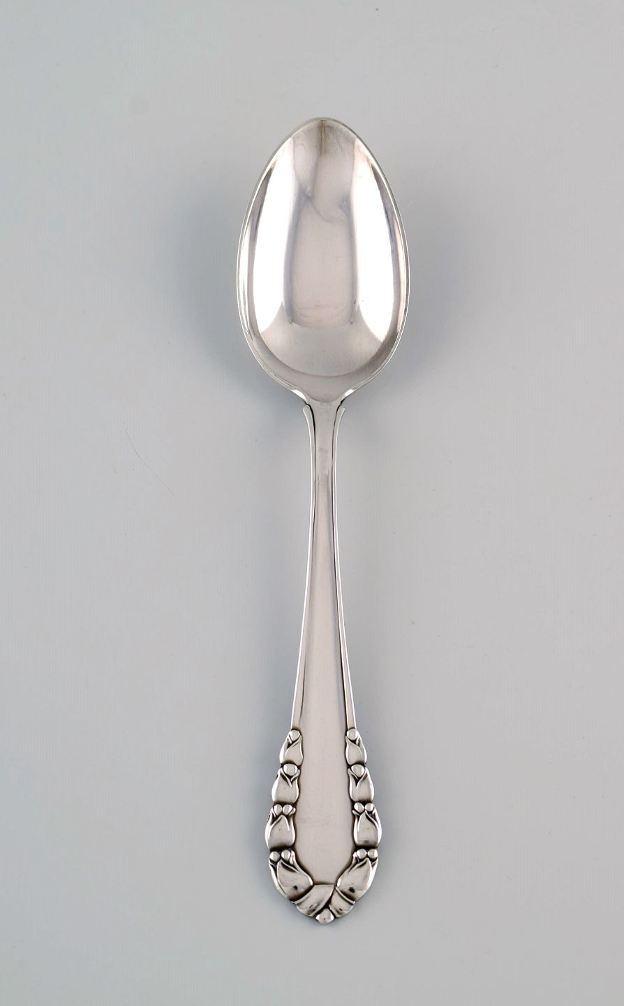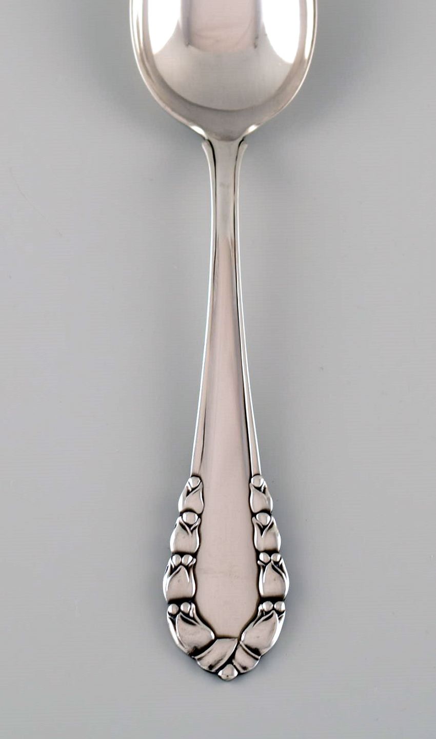 Georg Jensen Liljekonval spiseske i sterlingsølv. Otte styk på lager.