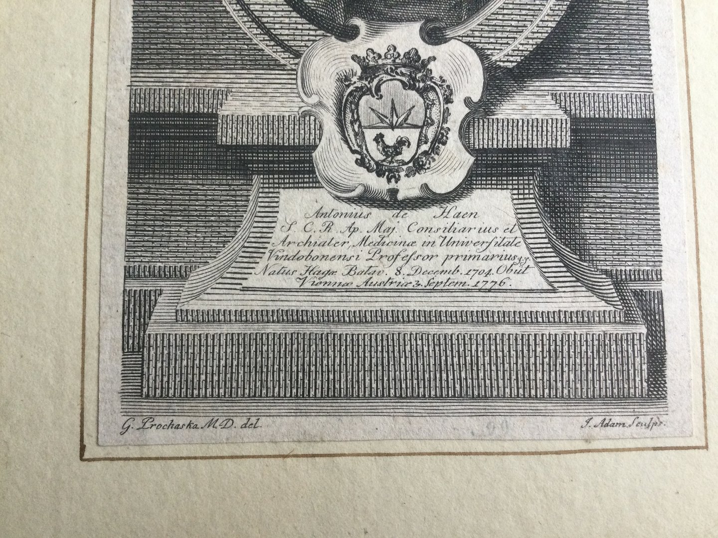 Kobberstik af Jacob Adam - Portræt af lægen Anton de Haen (1704-76).