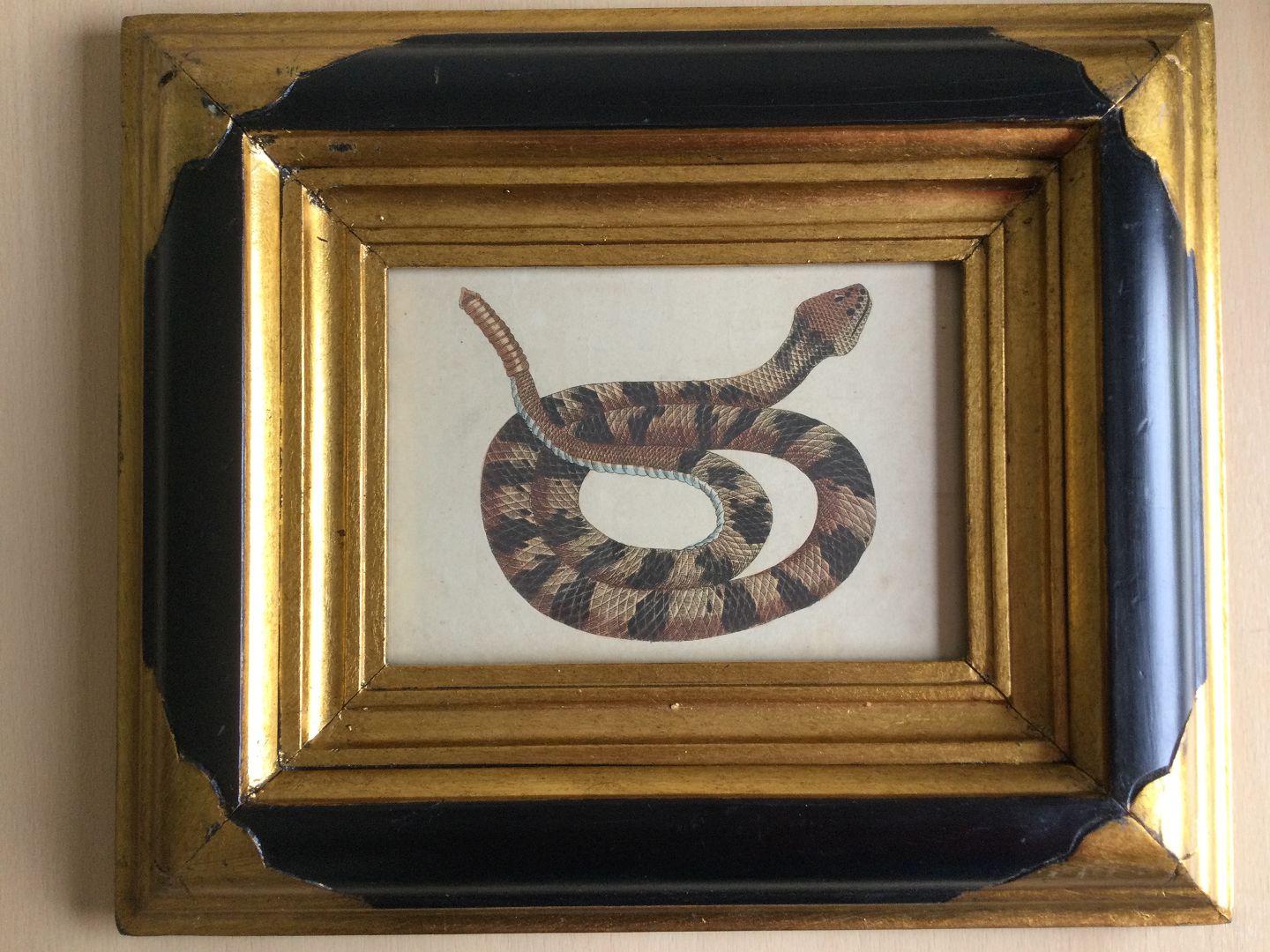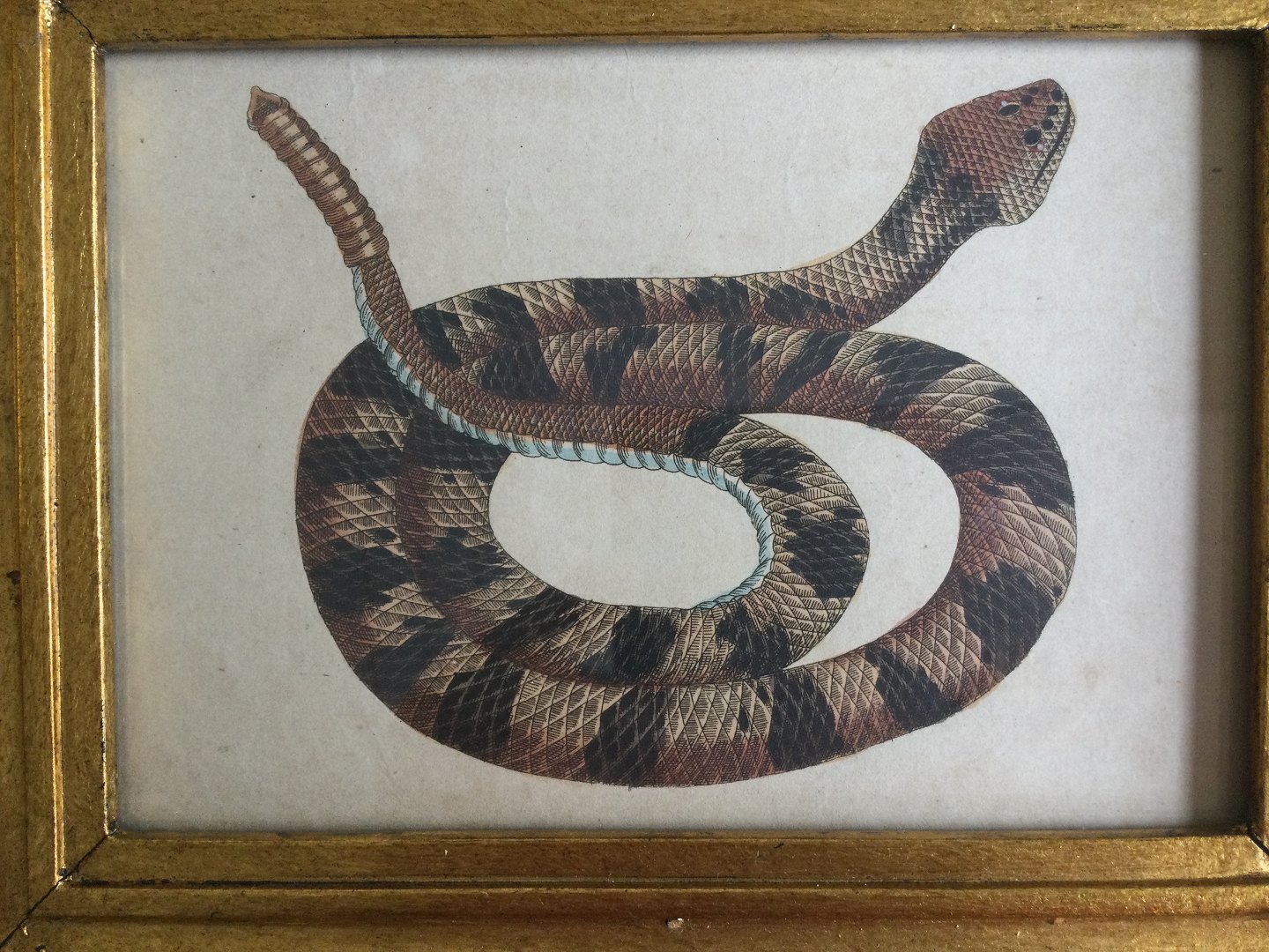 Koloreret kobberstik - Klapperslange.