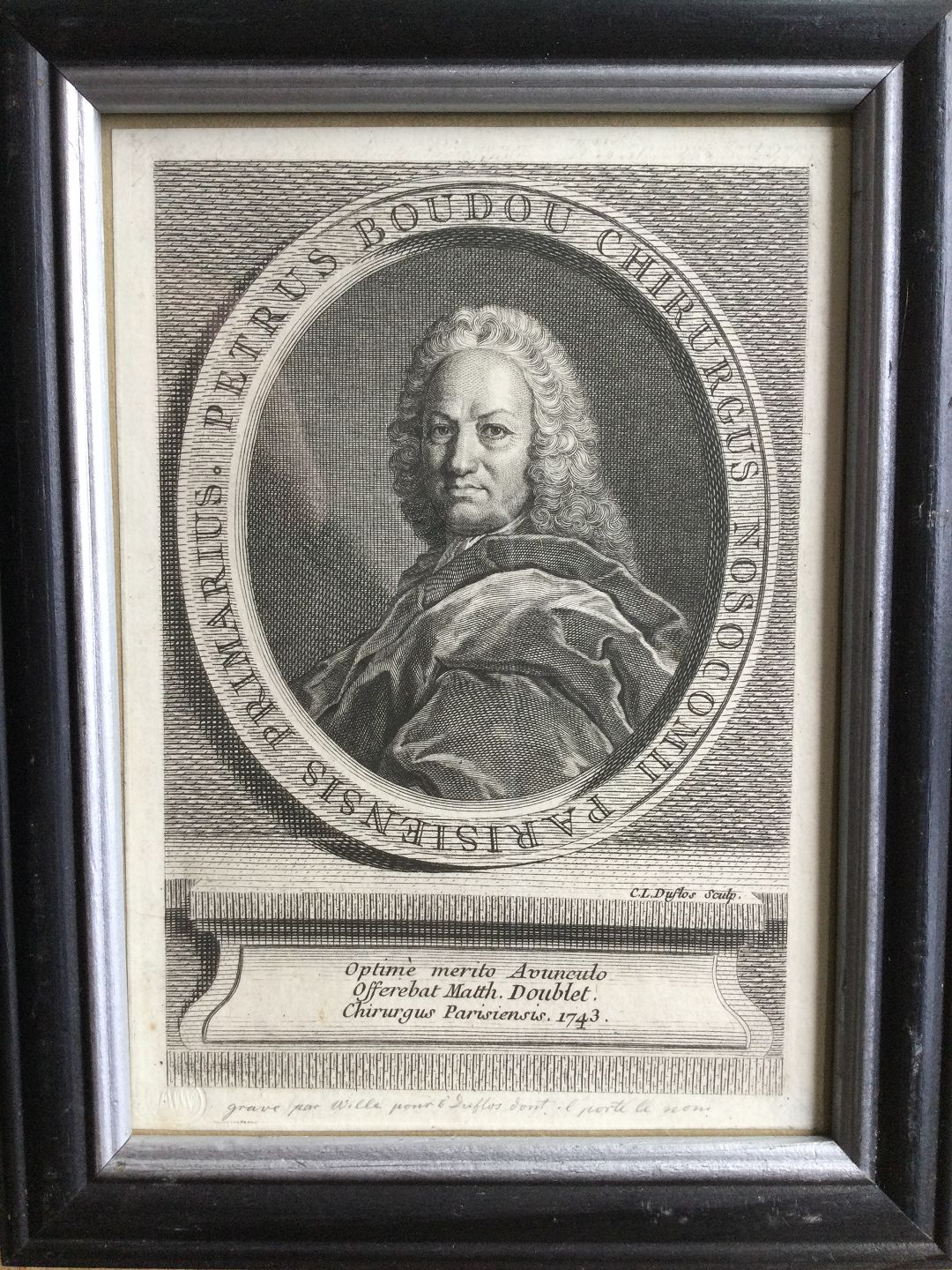 Kobberstik 1743 - Portræt af Kirurgen Pierre Boudou.