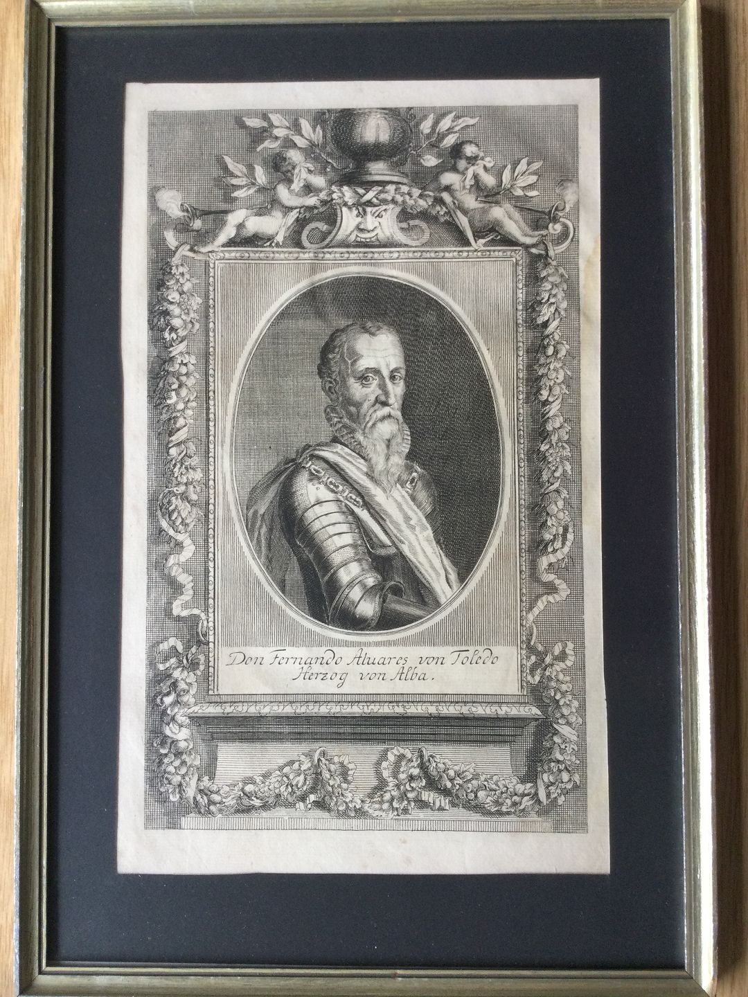 Kobberstik 1721 - Portræt af Hertugen af Alba, Don Fernando Álvarez.