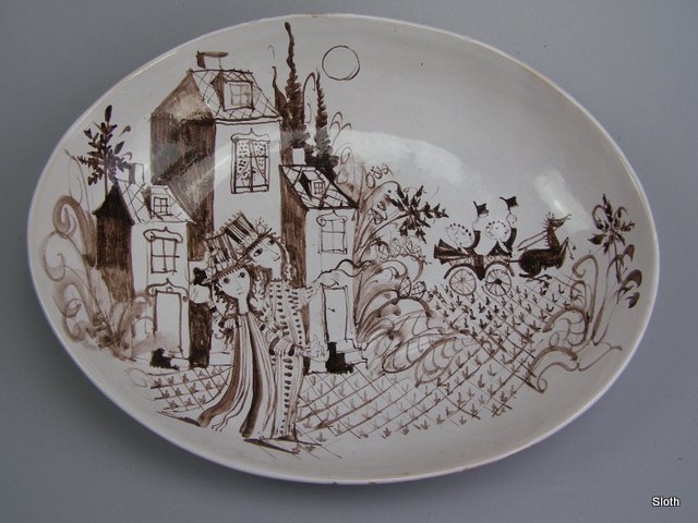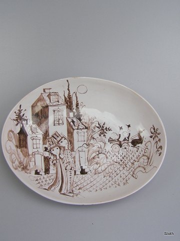 Bjørn Wiinblad Ovalt Fad Unica 1948 H: 7 cm. L: 38 cm. B: 30 cm.