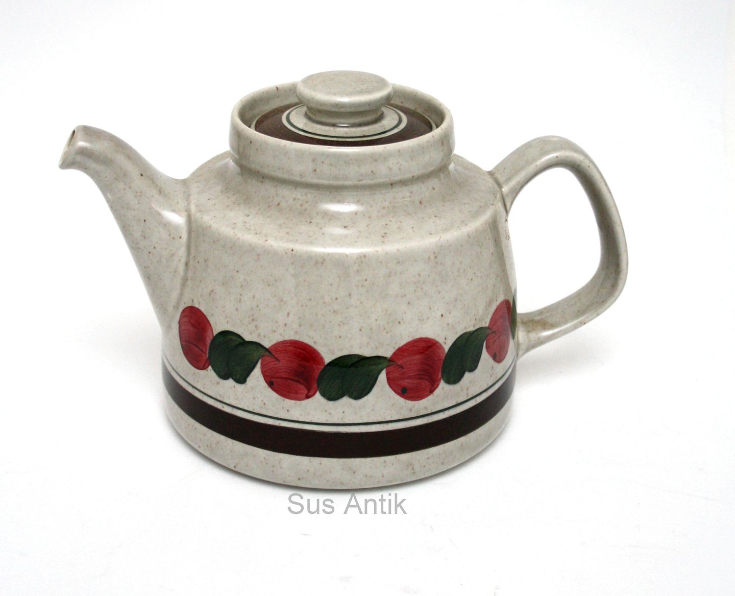 Rørstrand, Birgitta. Gråt stoneware med håndmalede blomster og brun kant. Tekande. Højde 14 cm. Diameter 15 cm. Pris: 300 kr.