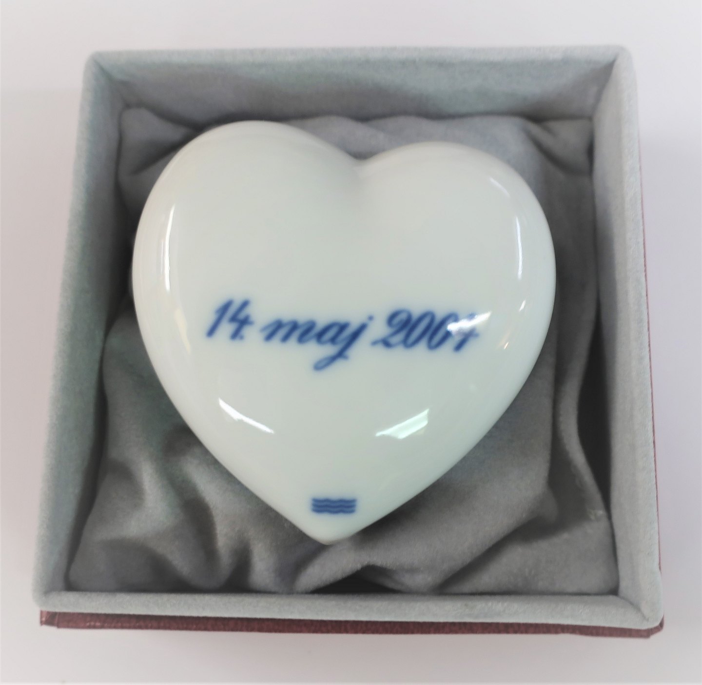 Royal Copenhagen. Wedding heart. Made to Crown Prince Frederik & Princess Mary 'wedding. Back with date 14 May 2004. Width 7 cm