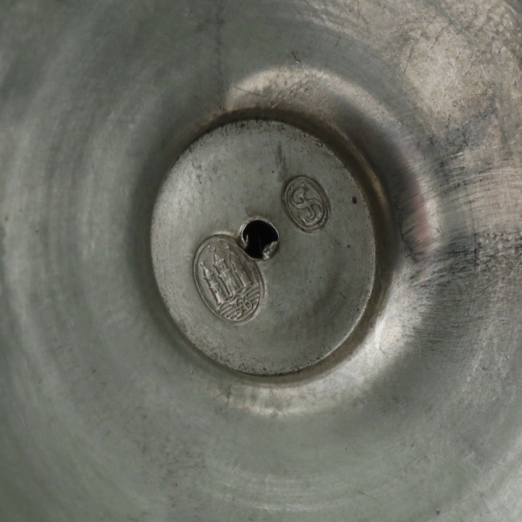 Arne Bang. Krukke i stentøj med låg i sølv.