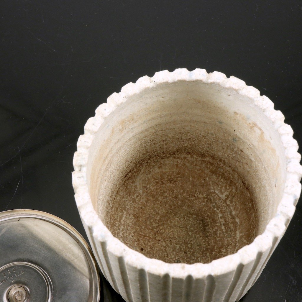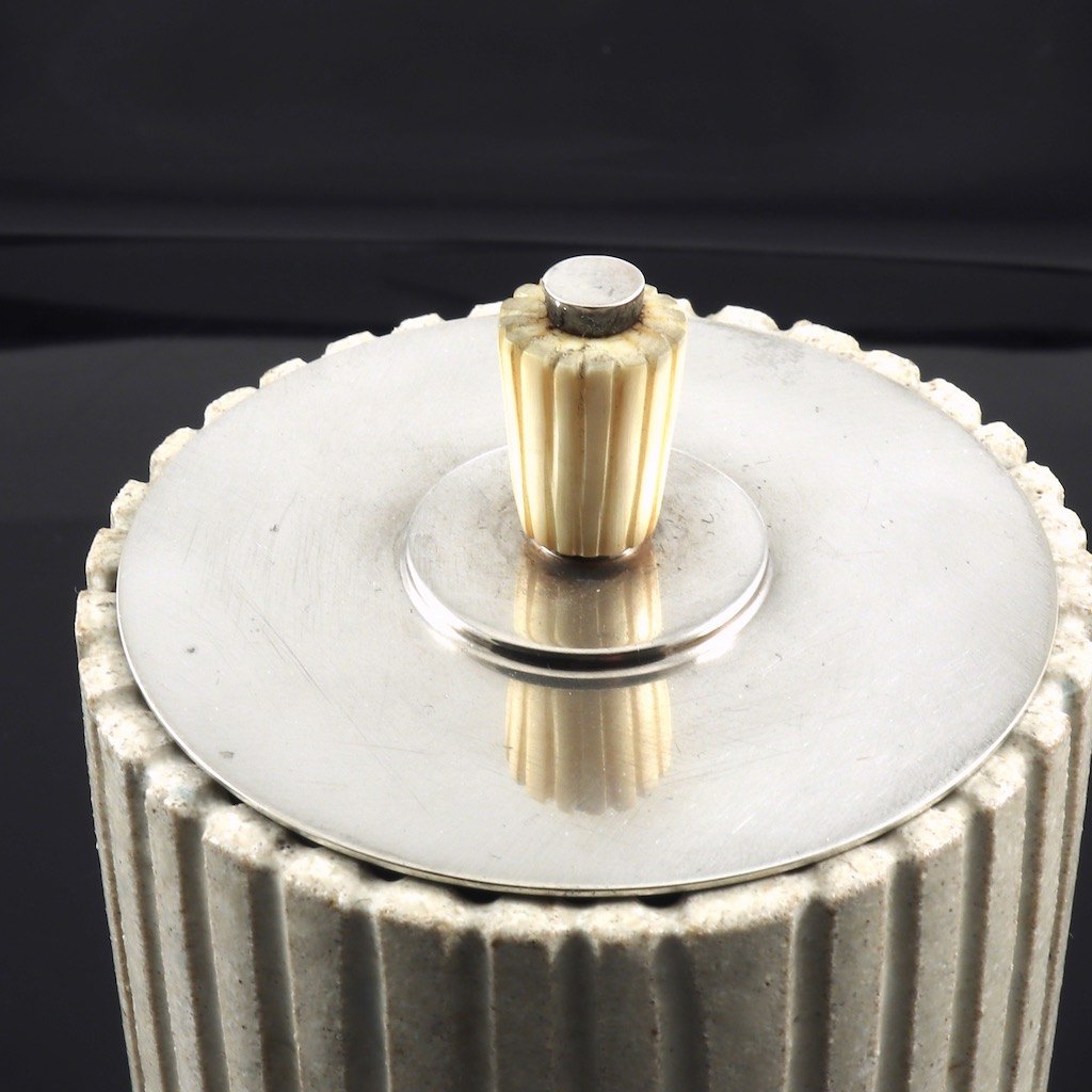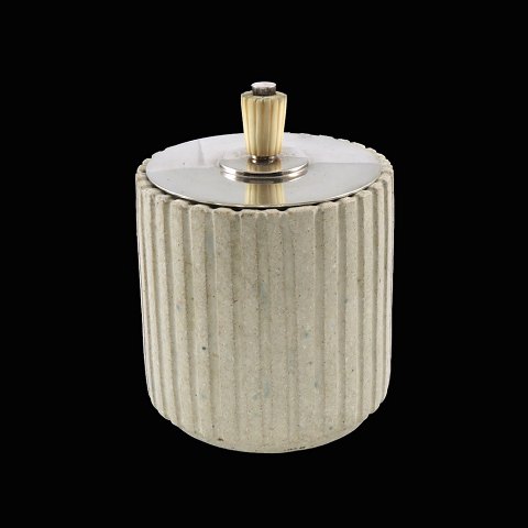 Arne Bang - C.C.Hermann. Fluted Stoneware Jar with Sterling Silver Lid.