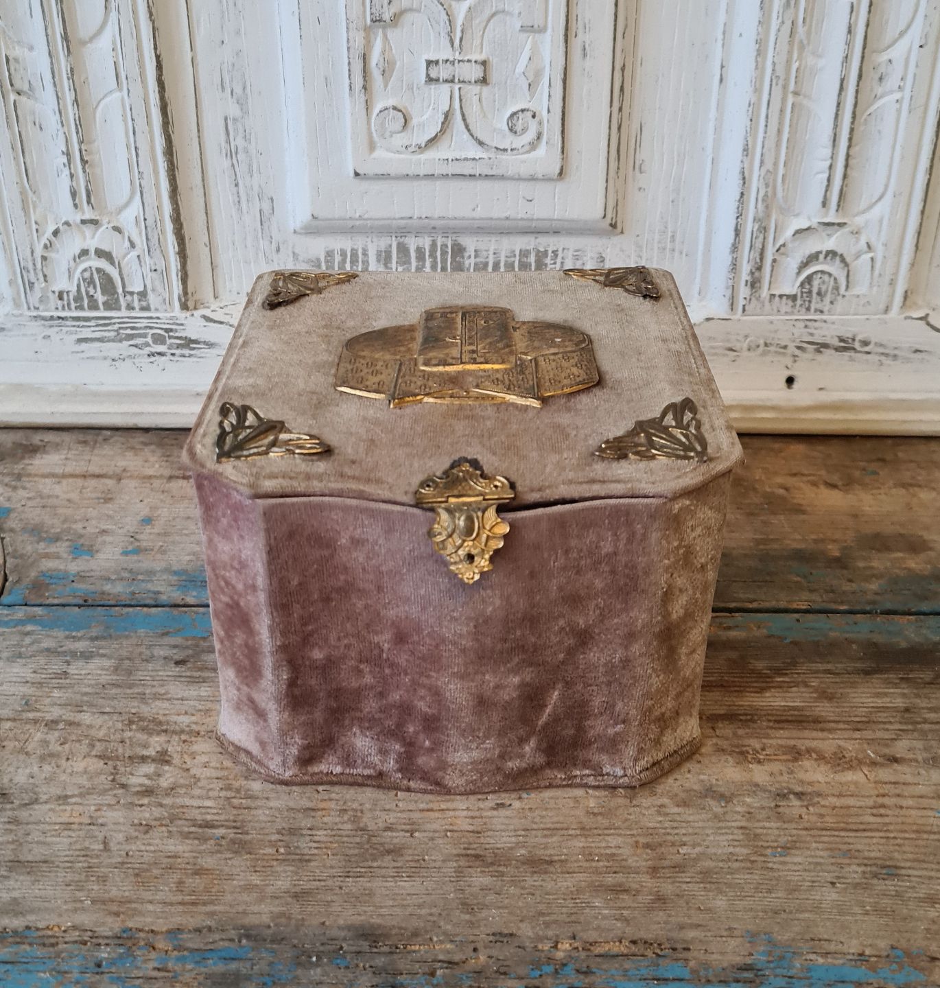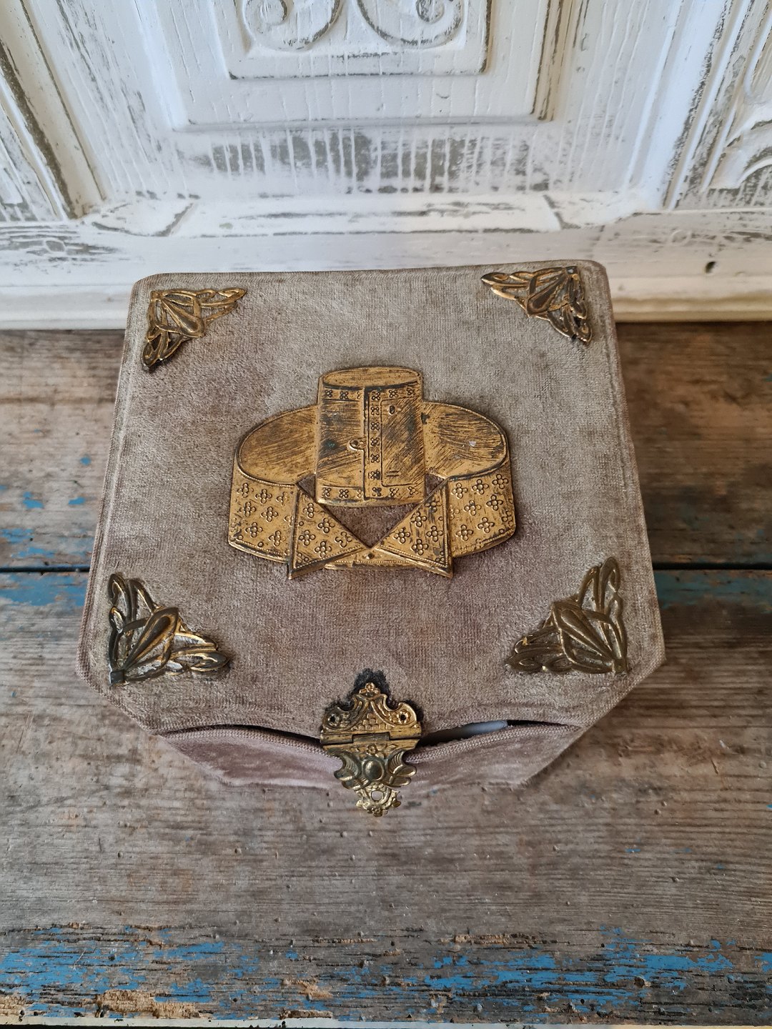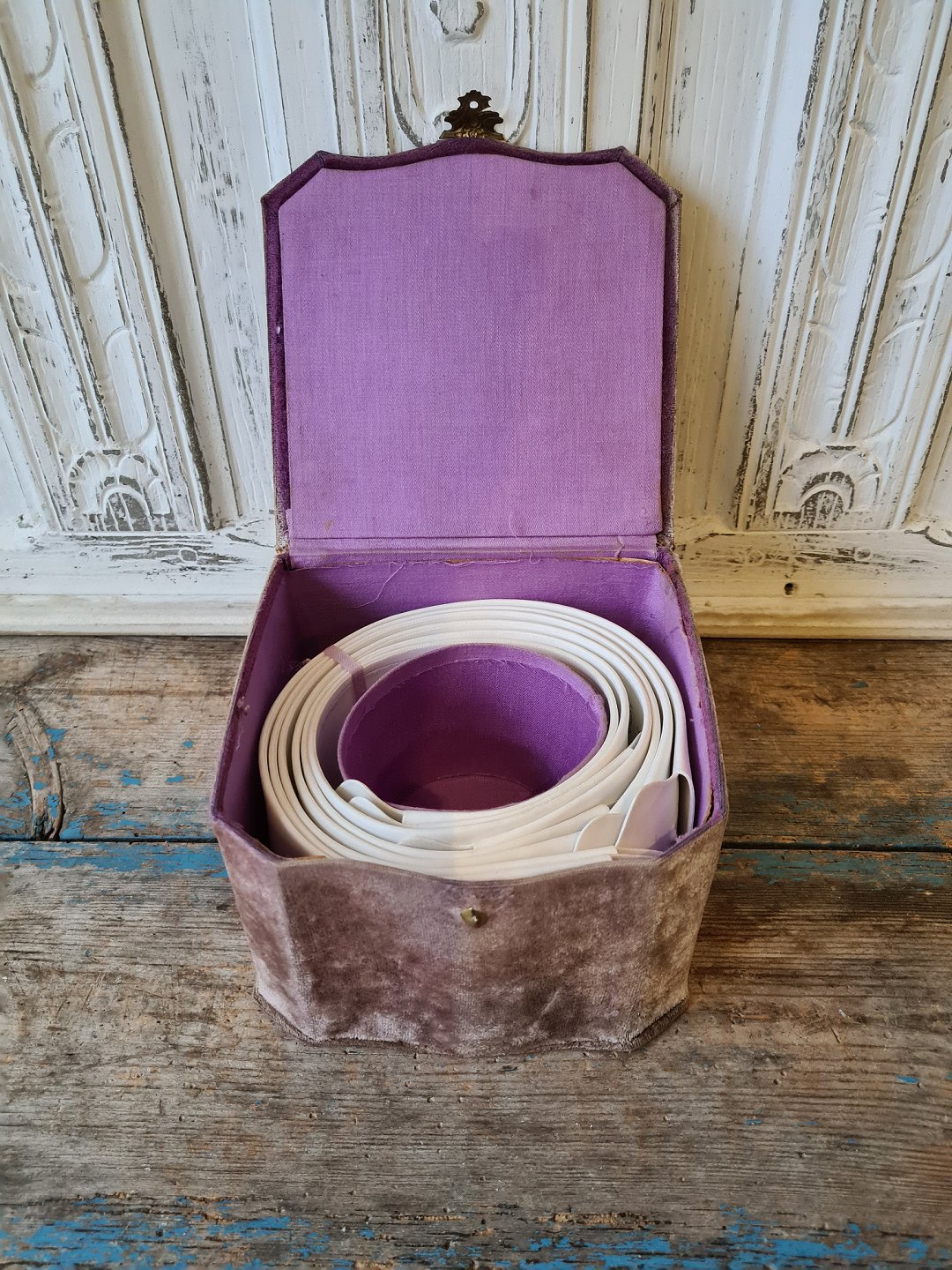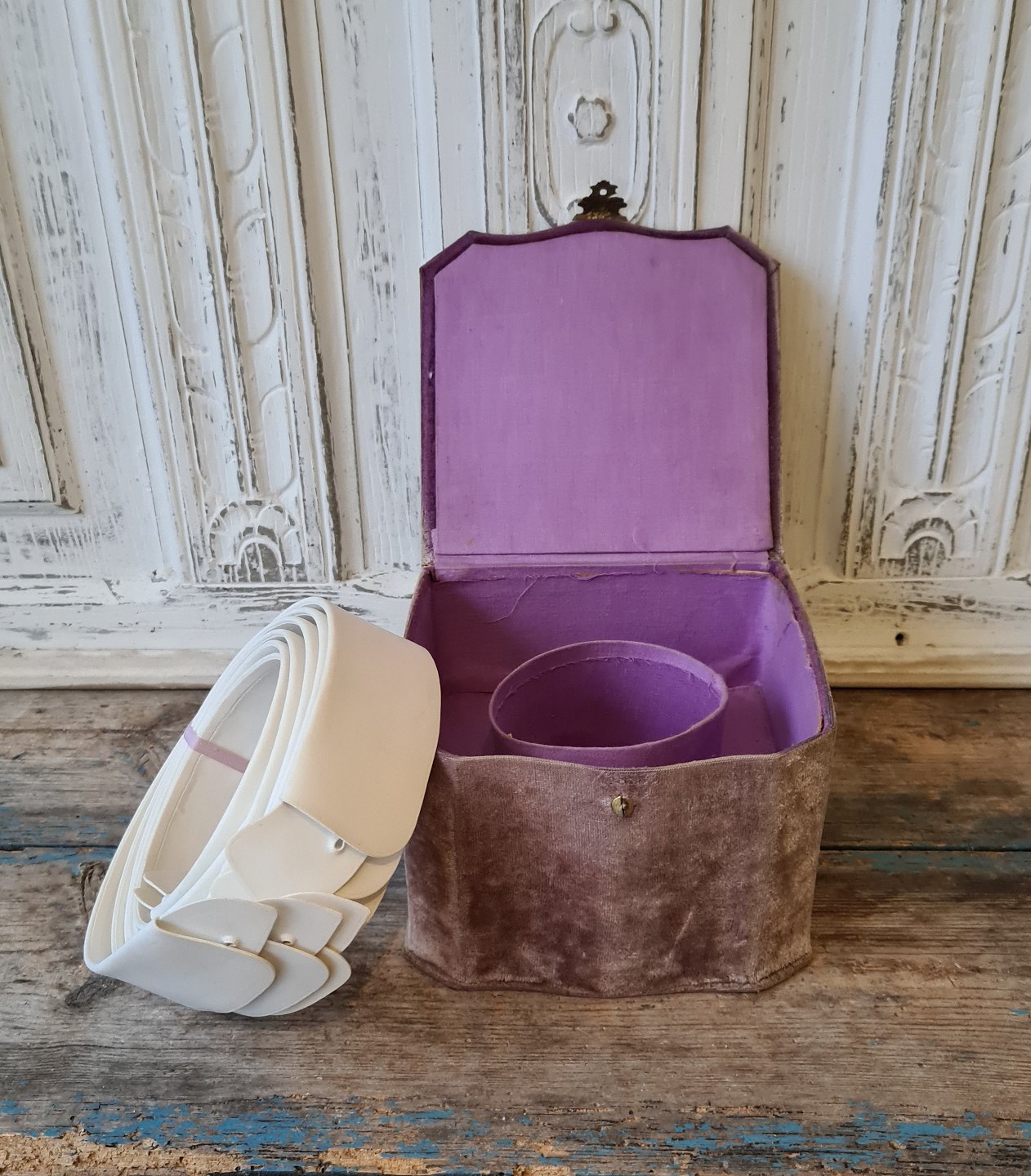 Skøn gammel krave æske beklædt med lilla fløjl